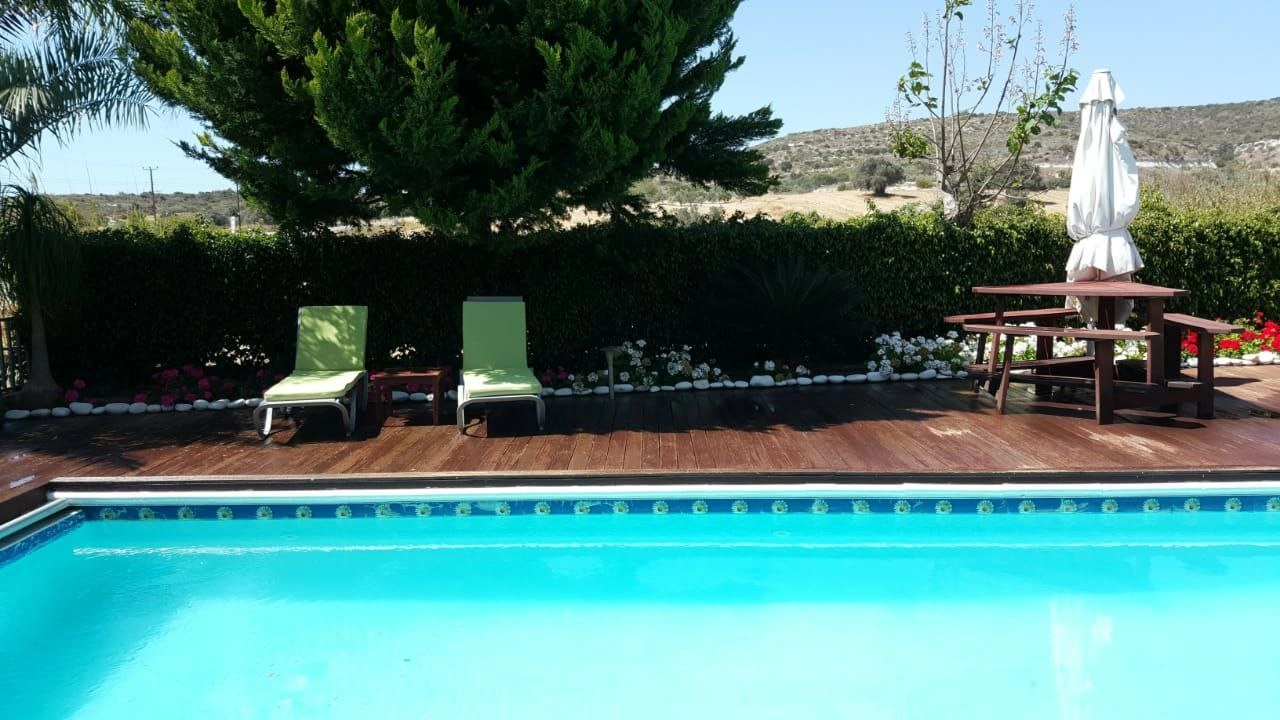 For sale a two-storey house with three bedrooms (with the possibility to make a fourth) in Pentakomo (Limassol) 2 minutes from the beach. Fully furnished and equipped with household appliances, air conditioning. There are solar panels to save electricity. The master bedroom has access to a small balcony. There is a toilet on the ground floor and a main bathroom on the ground floor. Open plan living room with kitchen, dining room and fireplace. A beautiful garden in the courtyard, a 13×2.5 m swimming pool, nearby there are sun beds for relaxing and sunbathing. There is a large wooden shed in the yard for storing things. Covered double parking.