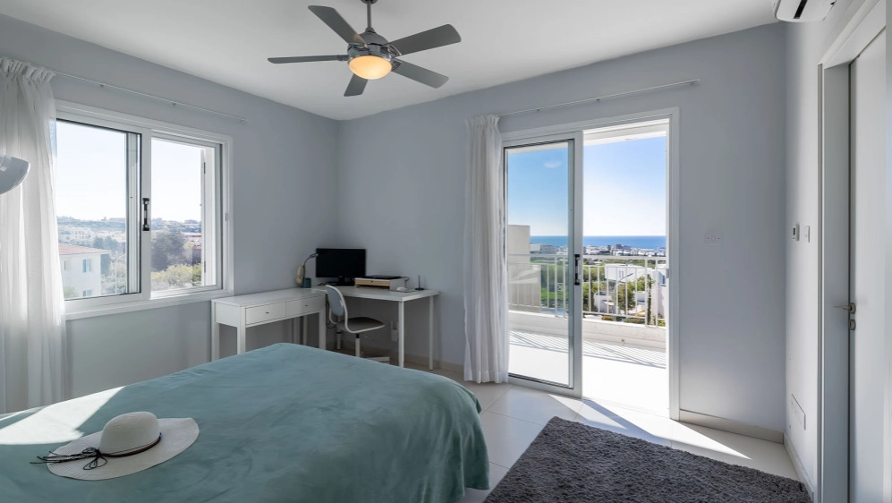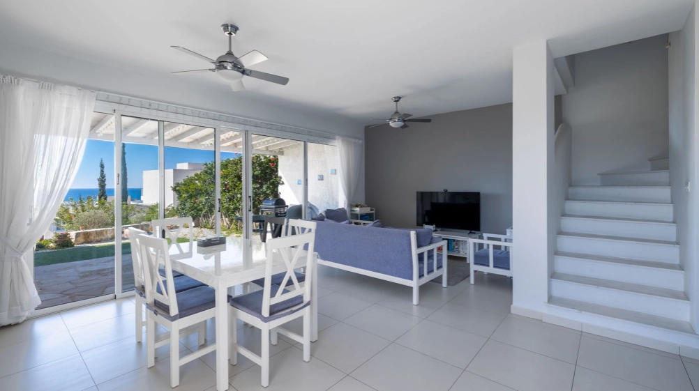 This amazing 3 bedroom villa with stunning sea views is located on a gently sloping hillside in Chloraka on the outskrits of Paphos. The villa is just 600 m from the sea and the nearby luxury beach hotels, in an exclusive coastal area, within walking distance of the shops and schools. Set in a quiet neighborhood, this home provides a peaceful retreat yet is conveniently close to amenities. The two-storey residence boasts stunning sea views stretching beyond the city below. With two bedrooms upstairs and 1 bedroom on the entrance floor, two bathrooms, open plan kitchen, living area with its own terrace, it offers ample space for comfortable living. The property boasts plenty of outdoor space, including a sea-view covered veranda. The house was designed in a neutral style and tone allowing the investor to choose whether to update it or rent it out immediately on a long/short term basis.