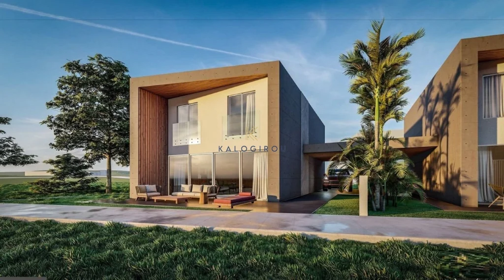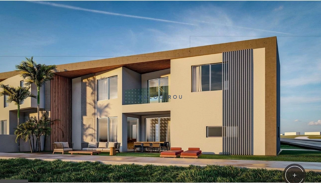 The house is a part of a new residential complex of three houses. The wider area is residential and the houses are surrounded with large green area. Each house comprises of a modern internal layout with open plan design for living/dining areas, kitchen and guest toilets on the ground floor and on the first units three bedrooms each the master en suite. Externally you can enjoy under the sun moments of relaxation and calmness in uncovered verandas.