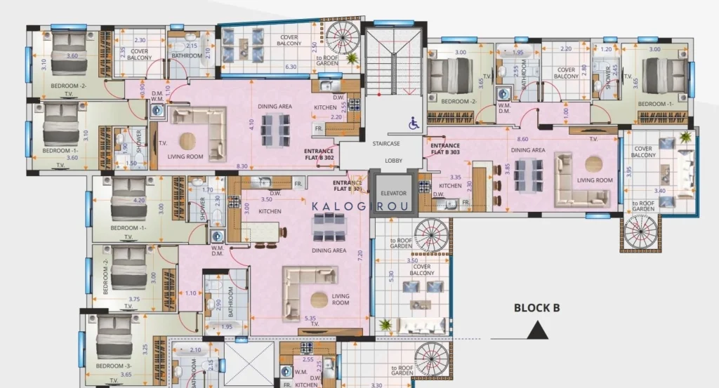Extra: Elevator, Storage room, covered parking, covered veranda, Provision for A/C, Roof Garden.