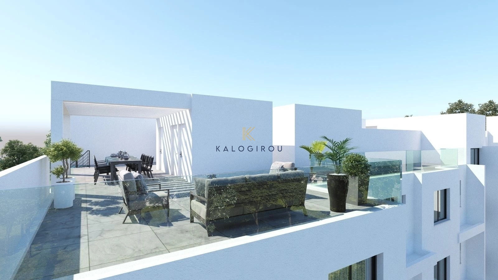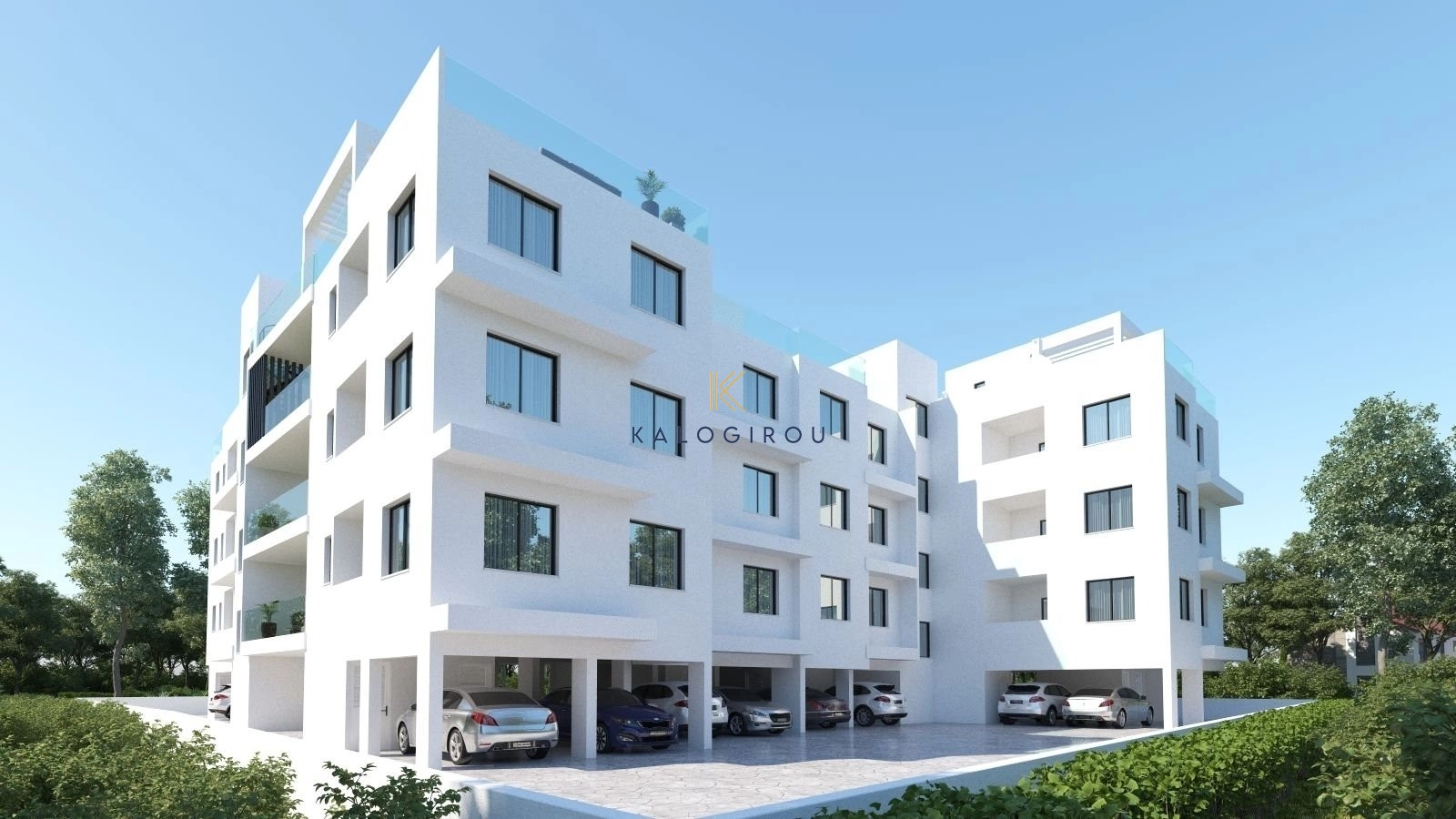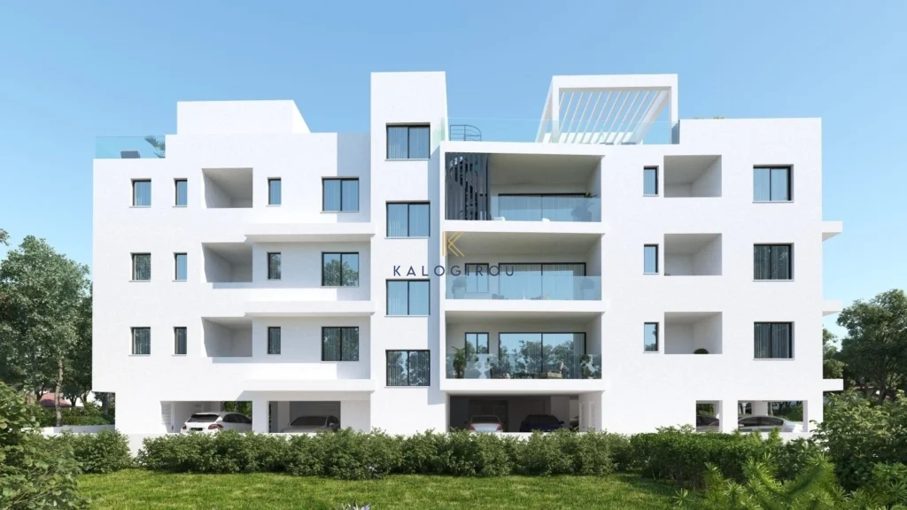 Apartment for Sale in Aradippou area, Larnaca. This beautiful apartment consists of an open plan kitchen and living room with dining area, two bedrooms, one common bathroom with wc and one en suite shower in the master bedroom. The apartment enjoys a private roof garden with sitting area and toilet. Also, the apartment has a storage room and covered parking space on the ground floor.