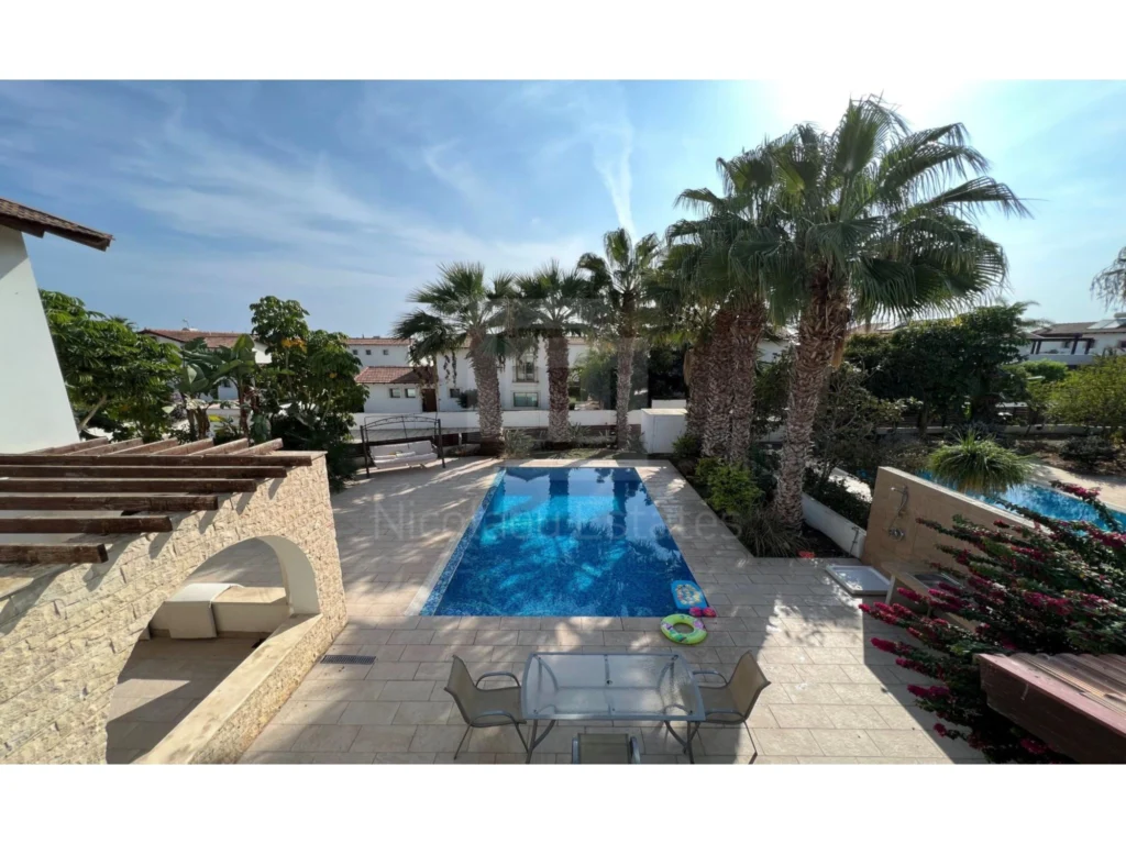 This gorgeous 3 bedroom villa is situated on a popular complex located in Ayia Napa Ayia Thekla. With a large and maintained pool area private parking a spacious living area with kitchen to satisfy all cooking lovers three good sized bedrooms and two bathroom spaces this villa offers comfort to all the guests. New Marina of Ayia Napa is just 2km away to the property. FEATURES Private doublo parking Private pool 600m to the beach Ready to move in NO VAT TITLE DEEDS YES