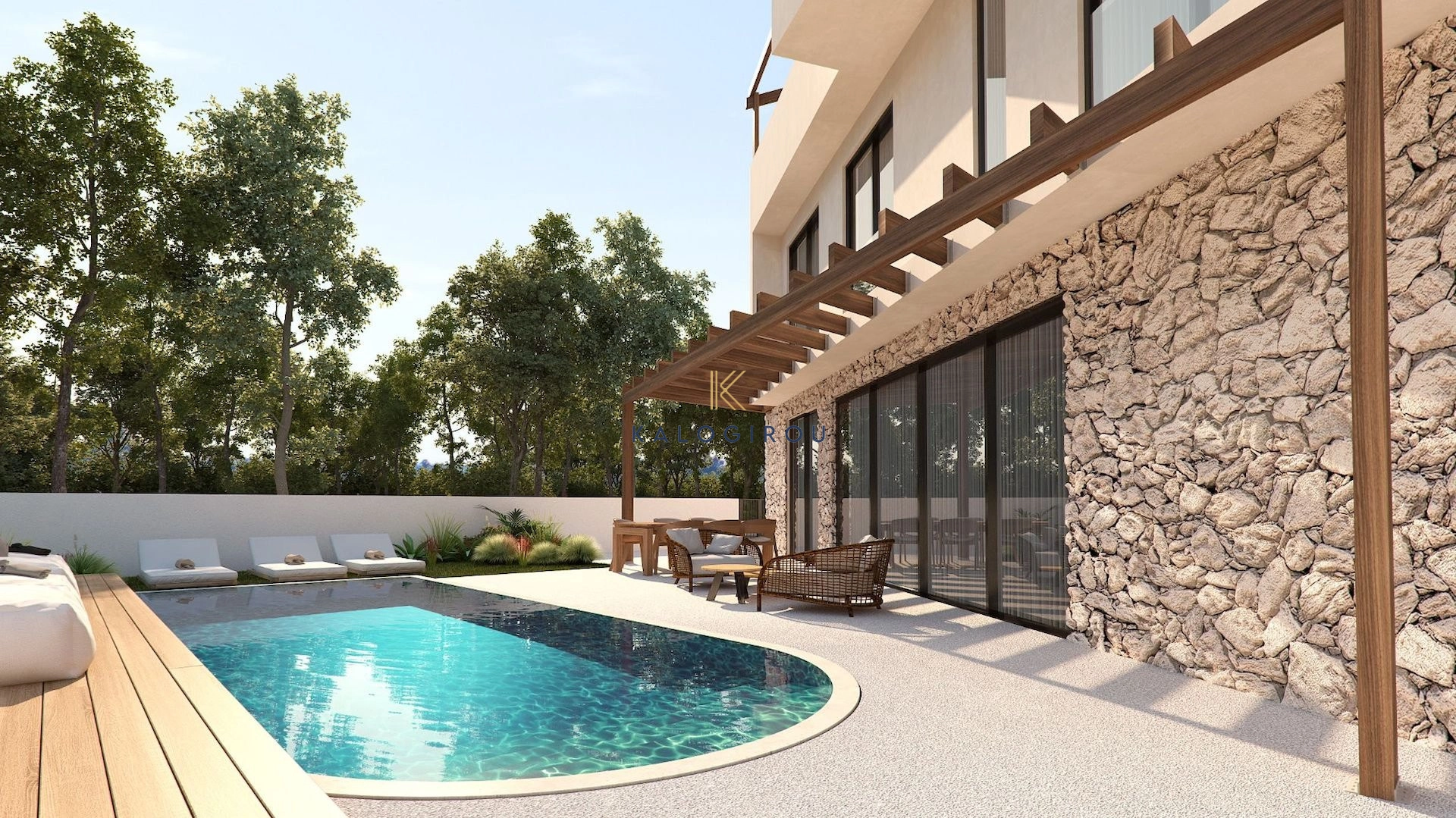 Villa for sale in Protaras area, Larnaca. Step inside, and be greeted by a sprawling layout that effortlessly combines spaciousness with functionality. The ground floor features open layout with kitchen, living and dining area, a guest wc and one bedroom en suite with shower. The first floor consists of 3 bedrooms all of them en suite. Moreover, the house has a second (top floor), which consists of one en suite bedroom and a roof garden with pergola and panoramic view. This villa also features a spacious basement, providing additional two bedrooms, en suite. The basement can be tailored to suit the owner’s needs, and be either a home gym, cinema room or wine cellar. Externally, the villa offers landscaped garden, skimmer swimming pool, pergola and parking space.