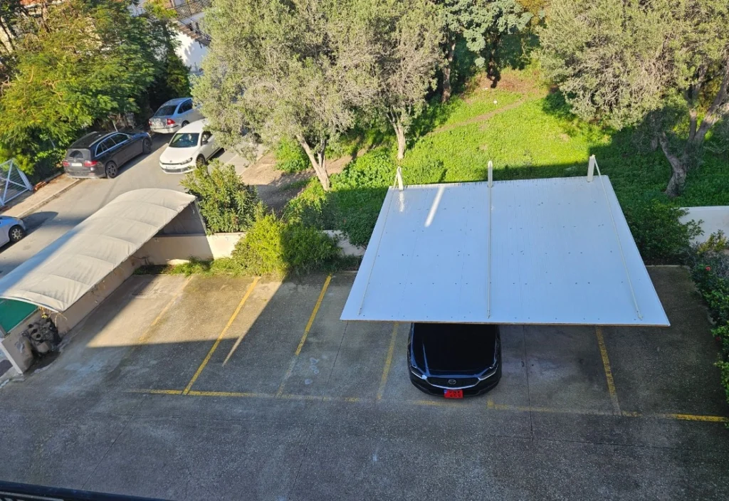 This full-floor apartment is located on the second floor, offering privacy and easy access. It comes with one uncovered parking space and is situated next to a green area, providing a peaceful and natural environment.