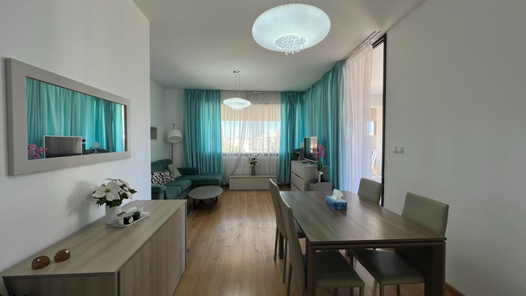 The 2-bedroom fully furnished and equipped apartment is located in immediate proximity to Makariou Avenue and Riga Fereou, right in the heart of Limassol, within walking distance to pharmacies, supermarkets, and restaurants, and just 700m from the beach. It has 2 bathrooms (with the bathtub and guest WC), a/c split units in all rooms, storage on the ground floor, covered parking, and a spacious covered terrace to enjoy your morning coffee. There is NO VAT and it has a title deed. Year of construction- 2019.