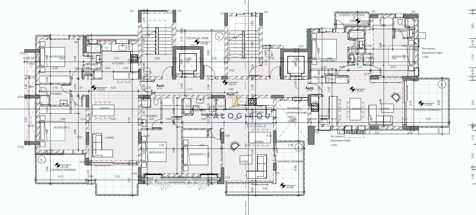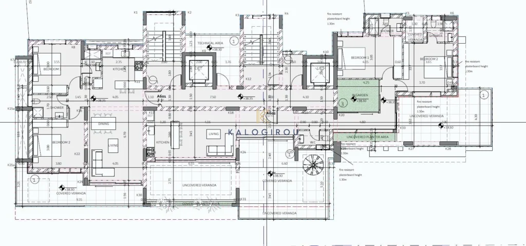 The apartment consists of an open plan kitchen with living & dining area, a main shower with wc and two bedrooms the master en-suite. It offers covered veranda, storage room and private parking space on the ground floor. The large roof garden on the top gives you a breathtaking scenery that you will never forget.