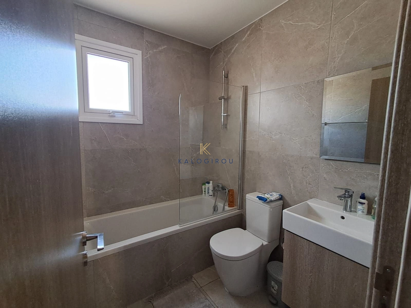 Apartment for sale in New Marina area, Larnaca. The apartment is part of a residential building, built in 2019. The apartment has internal covered area of 81 sq. m and consists of an open plan kitchen, dining and living room area, a main bathroom (with tub), two bedrooms, master bedroom is en suite with shower and wc, covered veranda of 20 sq.m and a beautiful roof garden of 30 sq.m. The property has allocated one covered parking and a storage room on the ground floor.