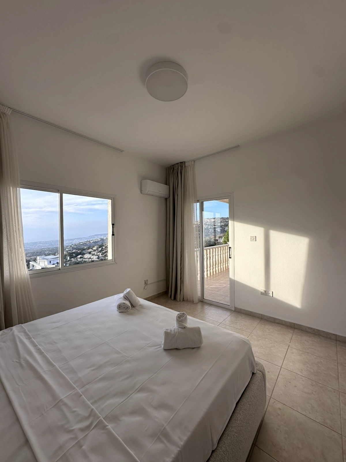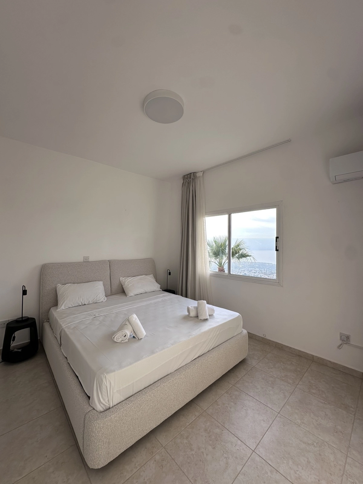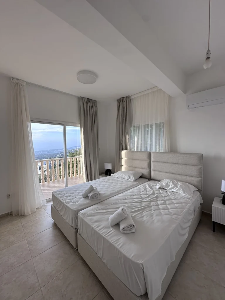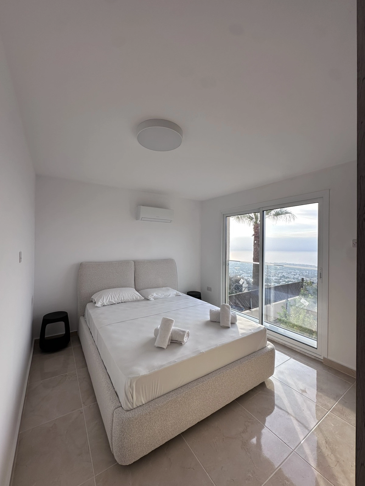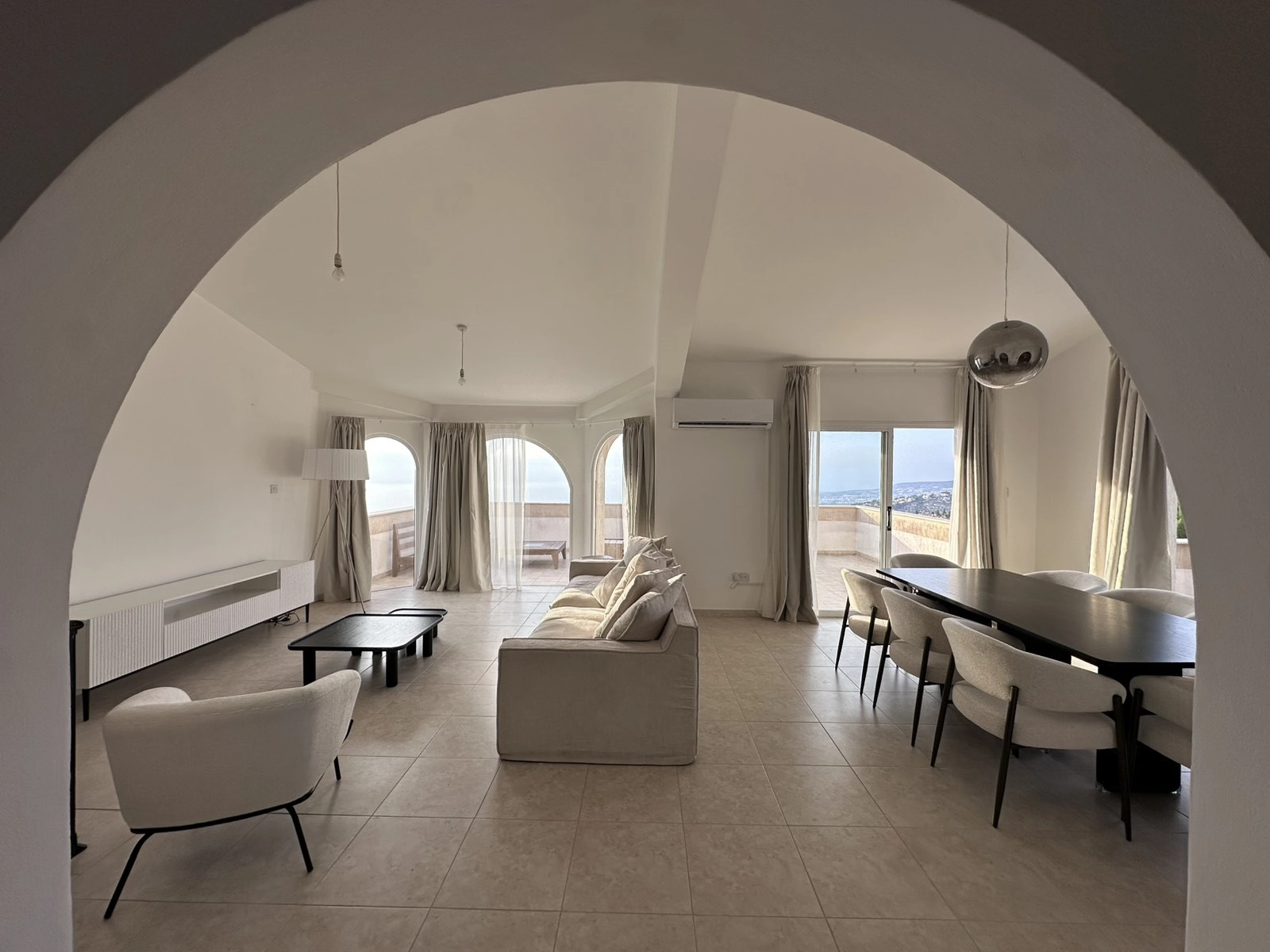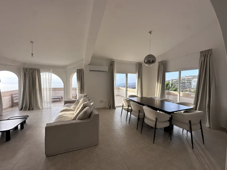 Perched on the peaks of the St. Neophytos mountains, this elegantly designed detached villa enjoys unobstructed sea views from every level, creating a serene and luxurious living environment.