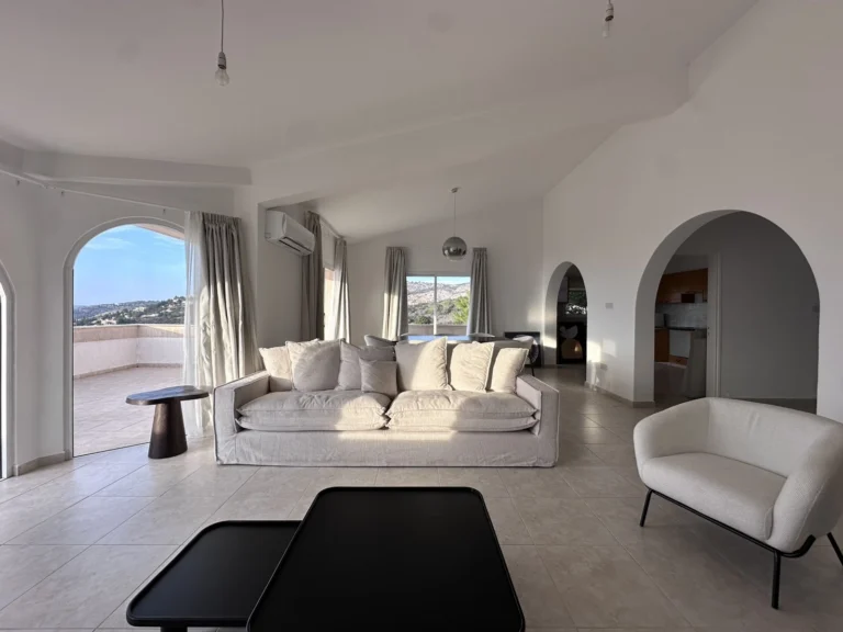 Perched on the peaks of the St. Neophytos mountains, this elegantly designed detached villa enjoys unobstructed sea views from every level, creating a serene and luxurious living environment.