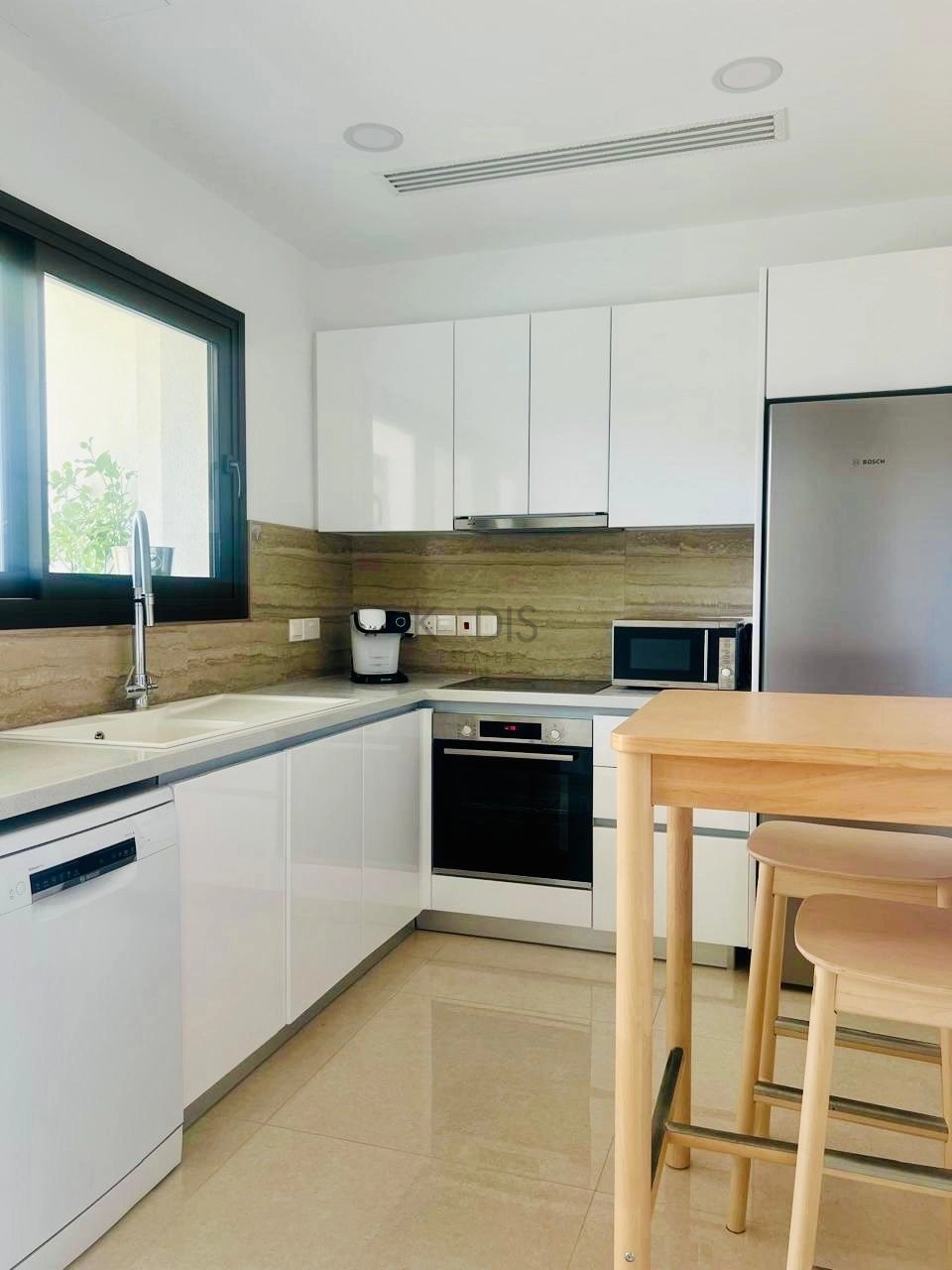 For sale: a stunning, fully furnished apartment located in the desirable Germasogia Tourist Area. This modern resale property, built in 2022, offers a generous internal space of 100 m2 featuring 2 spacious bedrooms and 2 well-appointed bathrooms. Situated on the first floor of a 2-story building with an elevator, this apartment is designed for comfort and convenience.
