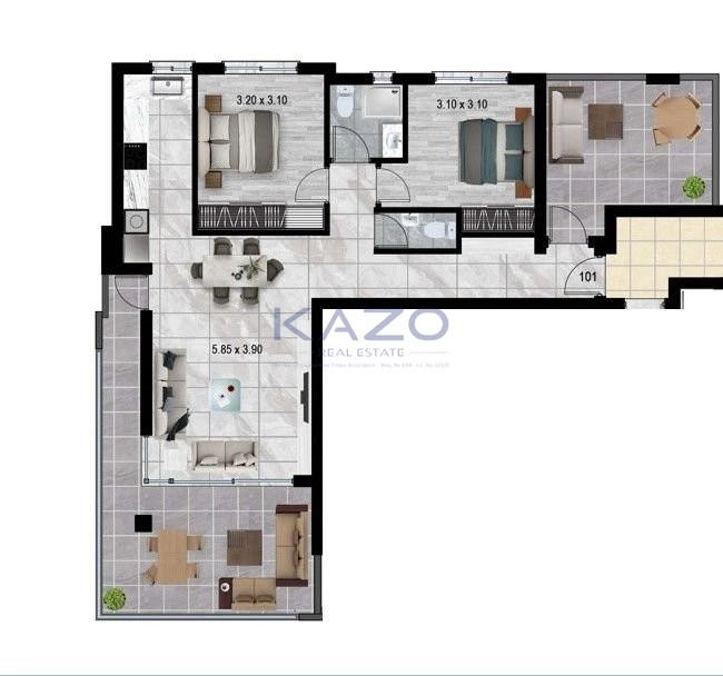 Don’t miss the opportunity to secure this modern apartment in a desirable location. Contact Kazo Real Estate for more information and to arrange a viewing. Your new home awaits!