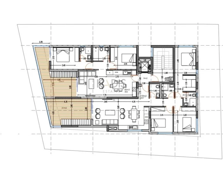 Apartment situated on the third floor for sale in New Marina-Port area, Larnaca Town. It is on the fourth floor and consists of an entrance hall, open plan kitchen with dining area & living room, 2 bedrooms, master bedroom is en suite with shower, a main bathroom, covered veranda and a large roof garden. The roof garden consists of a siting area, a storage/utility room and a shower room with wc. Moreover, the residents will have access to an assigned covered parking and storage room.