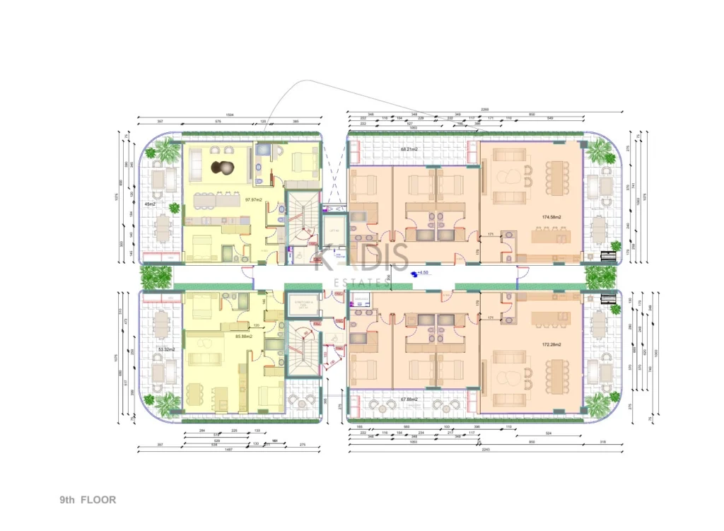 As a beacon of luxury, this project promises to redefine the standards of prime living. Boasting 8 meticulously crafted towers and a total of 280, 1, 2, 3 & 4 bedroom apartments, each exuding sophistication and opulence, this development offers a lifestyle of incomparable comfort and prestige. With foor-to-ceiling glazing adorning their facades, each tower offers panoramic views of the cityscape. Landscaped balconies grace every residence, merging urban living with natural beauty. At the estate’s centre lies a serene oasis—a central pool surrounded by 8,000m2 of lush landscaping.