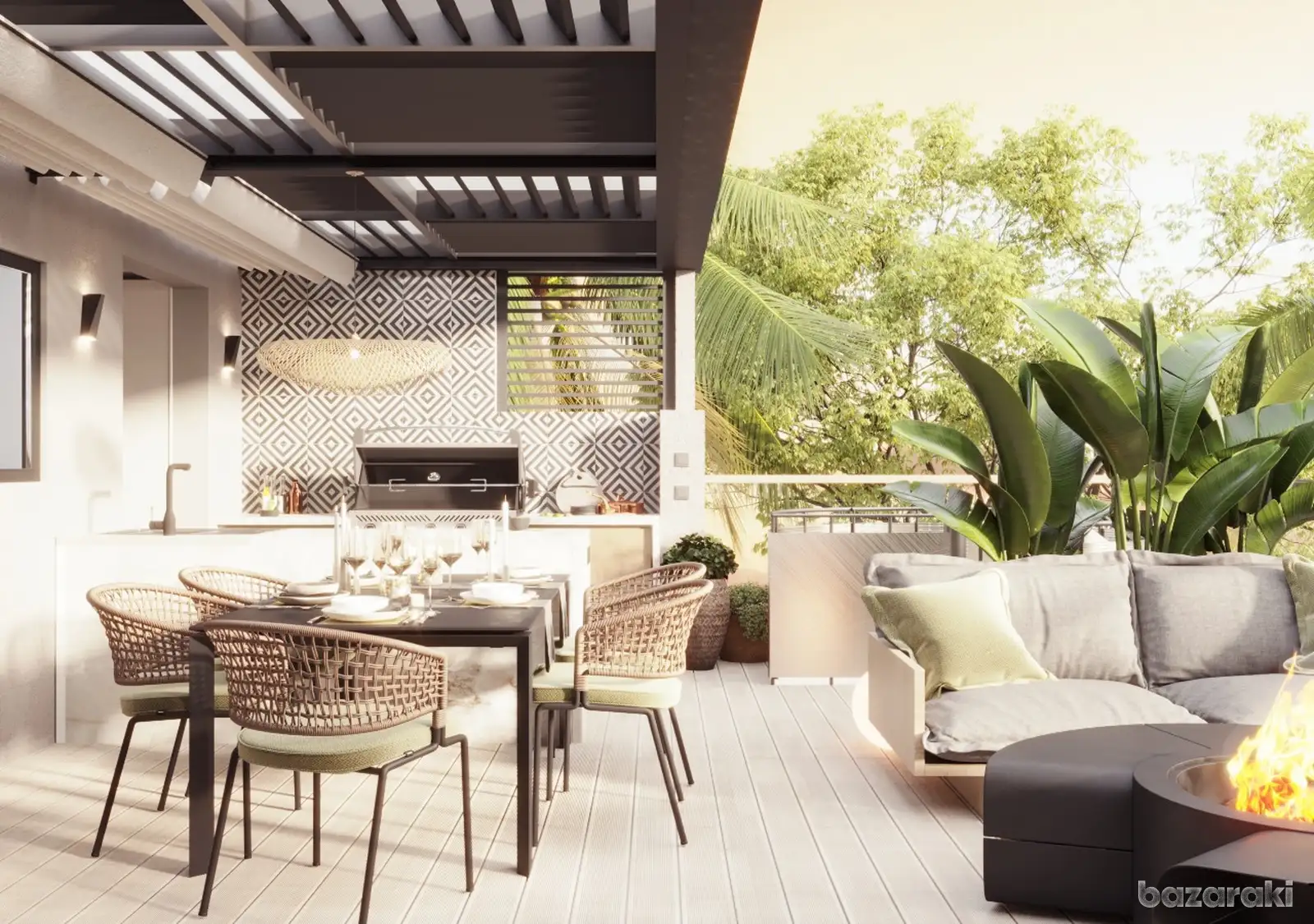 • Open plan fully equipped contemporary kitchen with an island from Italian brands,