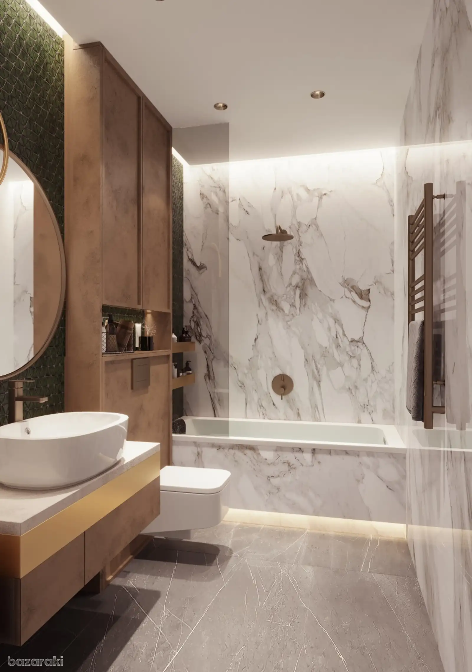 • Wall finishes: depending on design (“Art Deco”) – the combination of textured panels, decorative plaster, silk wallpaper and natural stone,