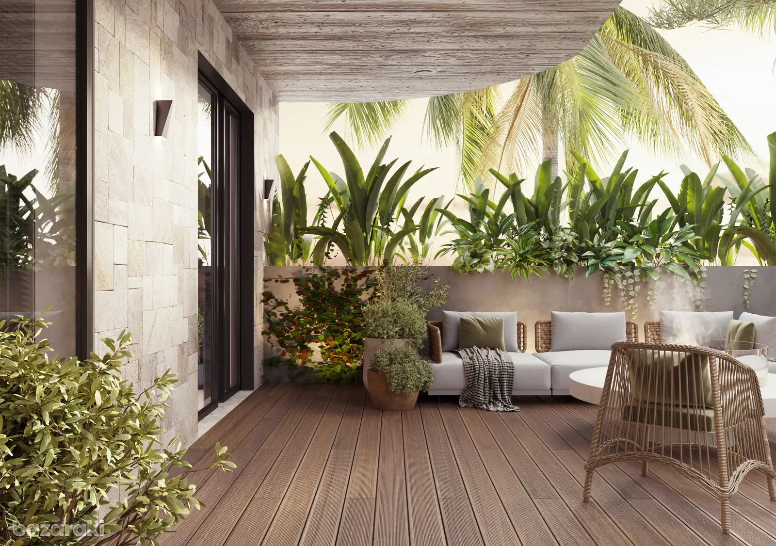 • Internal floors in a high quality ceramic tiles from Italian brands and semi-solid engineering board from Spain,