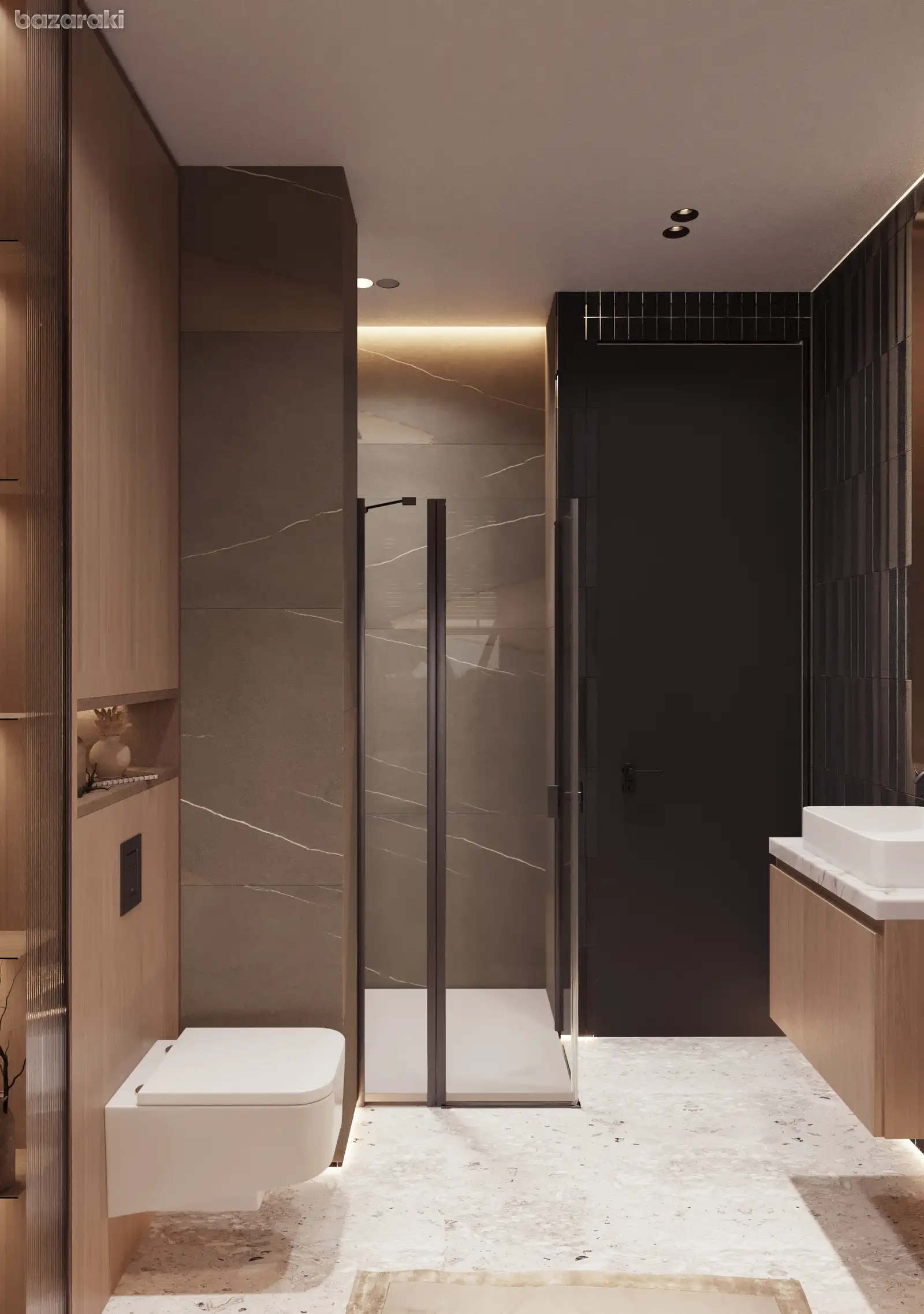 • Wall finishes: depending on design – the combination of textured panels, decorative plaster, silk wallpaper and natural stone,