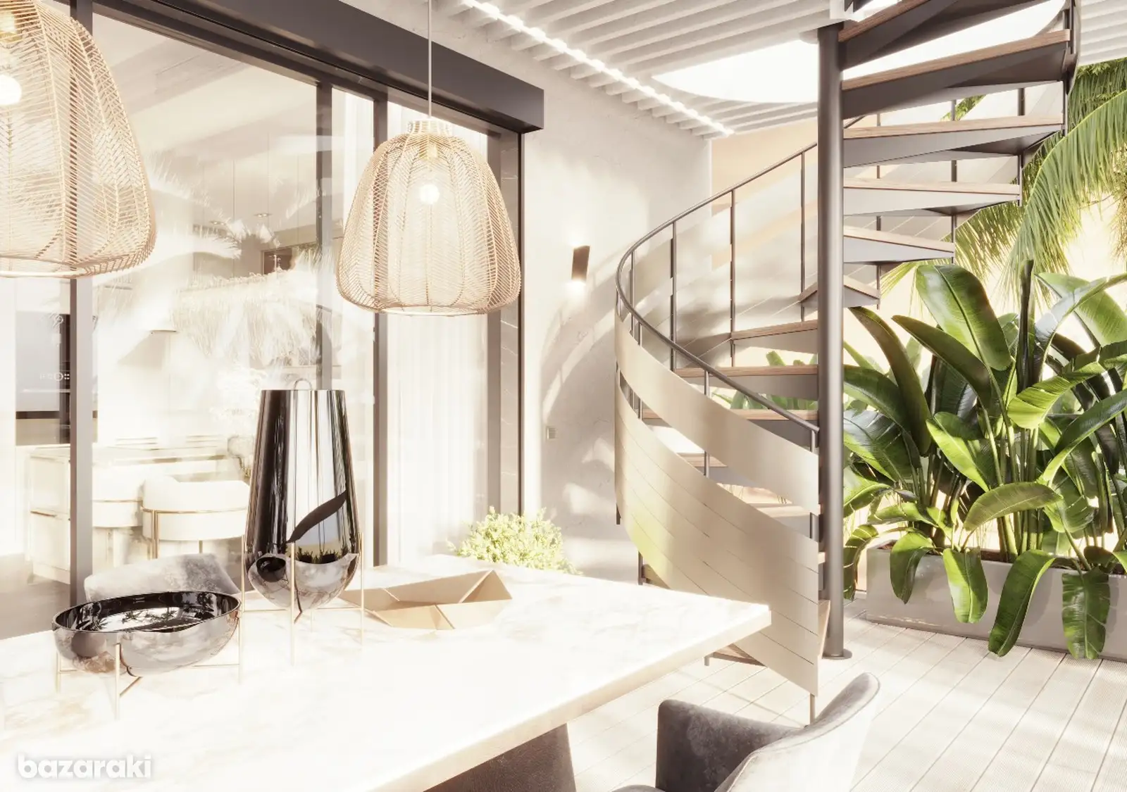 • Internal floors in a high quality ceramic tiles from Italian brands and semi-solid engineering board from Spain,