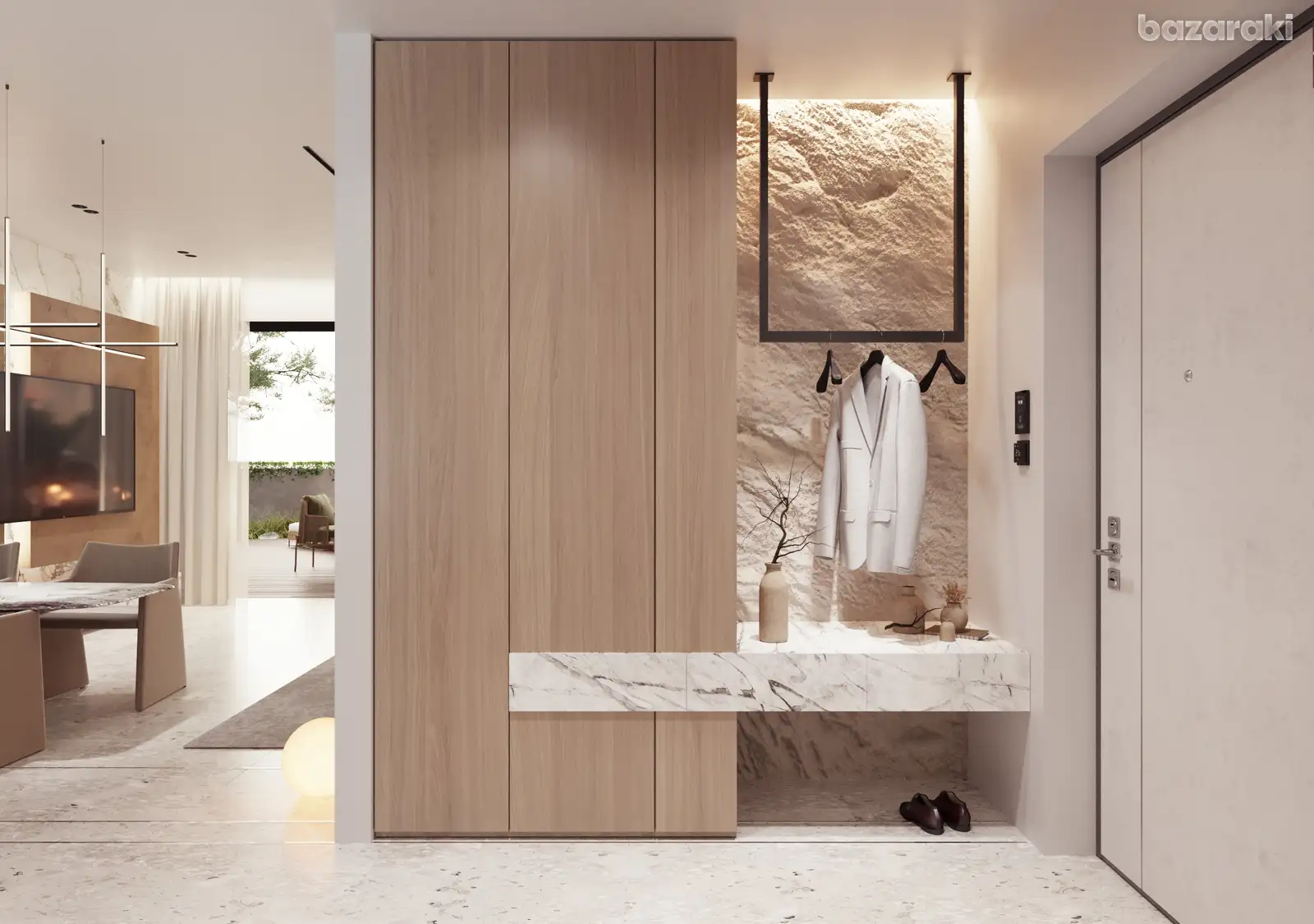 • Wall finishes: depending on design (“Grey Modern”) – the combination of textured panels, decorative plaster, silk wallpaper and natural stone,