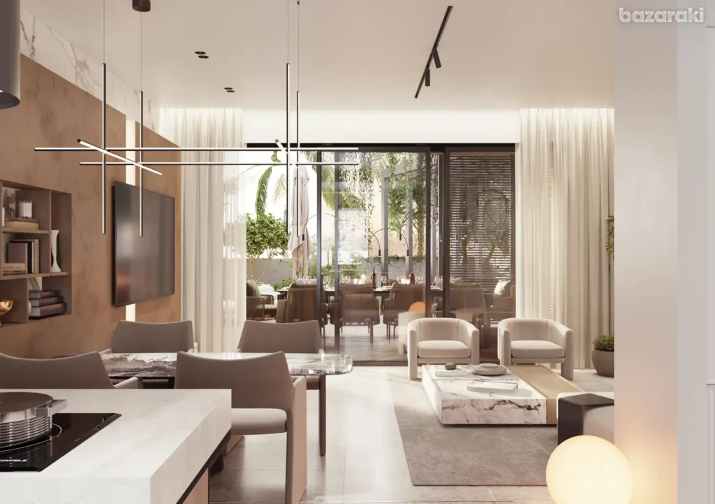 • Wall finishes: depending on design (“Beige Modern”) – the combination of textured panels, decorative plaster, silk wallpaper and natural stone,