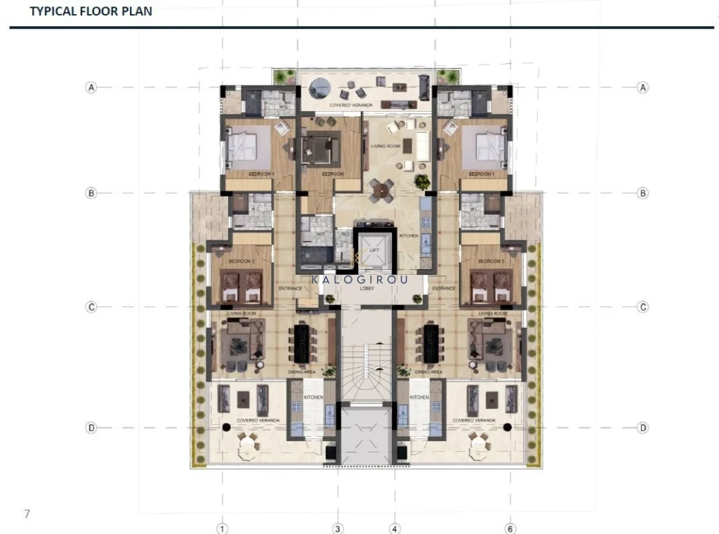 Apartment for sale in Larnaca, Makenzy area. The property is a first floor apartment, it has 77sq.m of internal covered area and it consists of an open plan kitchen, living room, dining area, two bedrooms, one main shower with WC and one en – suite bathroom with WC in the master bedroom. Moreover, the apartment has 20sq.m of covered veranda, while the residents will have exclusive covered parking on the ground floor and storage room.
