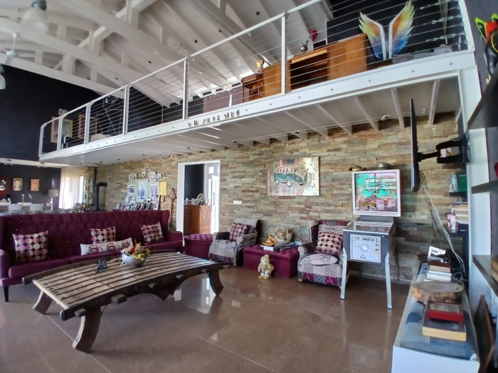 Spacious Living Areas – A beautifully designed open-plan space with high ceilings, stylish exposed brick walls, and a cozy fireplace, perfect for relaxation and entertaining.