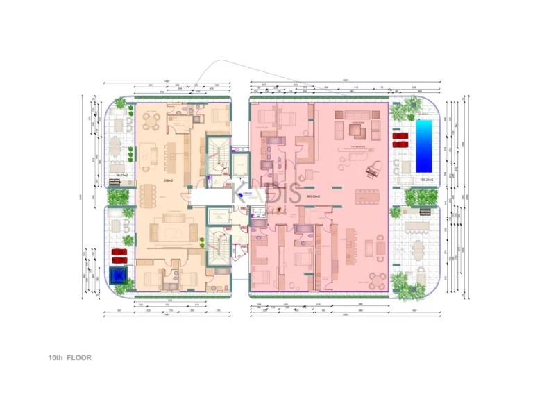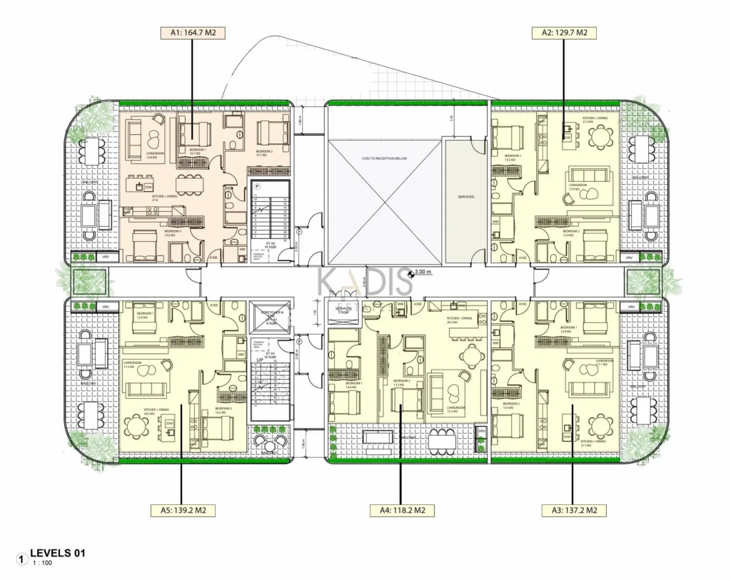 As a beacon of luxury, this project promises to redefine the standards of prime living. Boasting 8 meticulously crafted towers and a total of 280, 1, 2, 3 & 4 bedroom apartments, each exuding sophistication and opulence, this development offers a lifestyle of incomparable comfort and prestige. With foor-to-ceiling glazing adorning their facades, each tower offers panoramic views of the cityscape. Landscaped balconies grace every residence, merging urban living with natural beauty. At the estate’s centre lies a serene oasis—a central pool surrounded by 8,000m2 of lush landscaping.