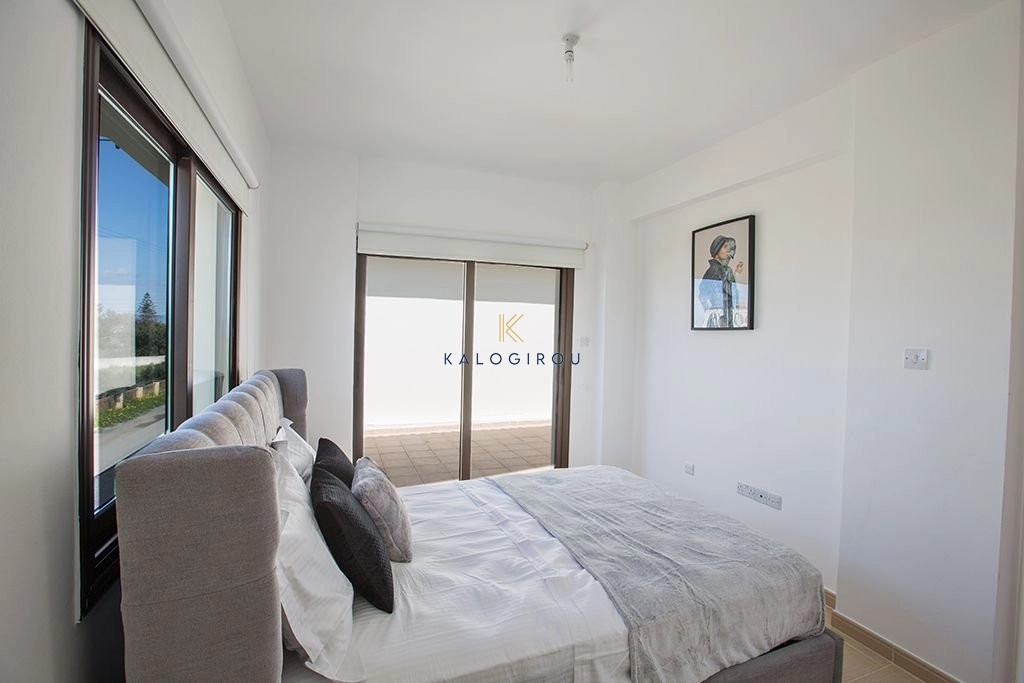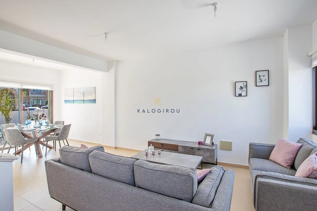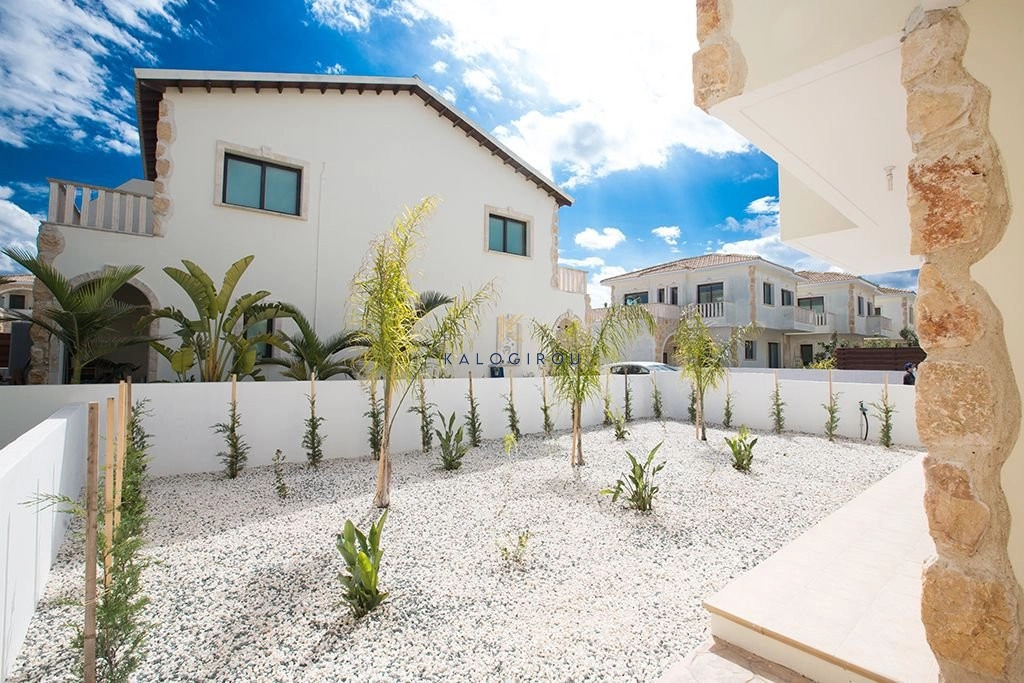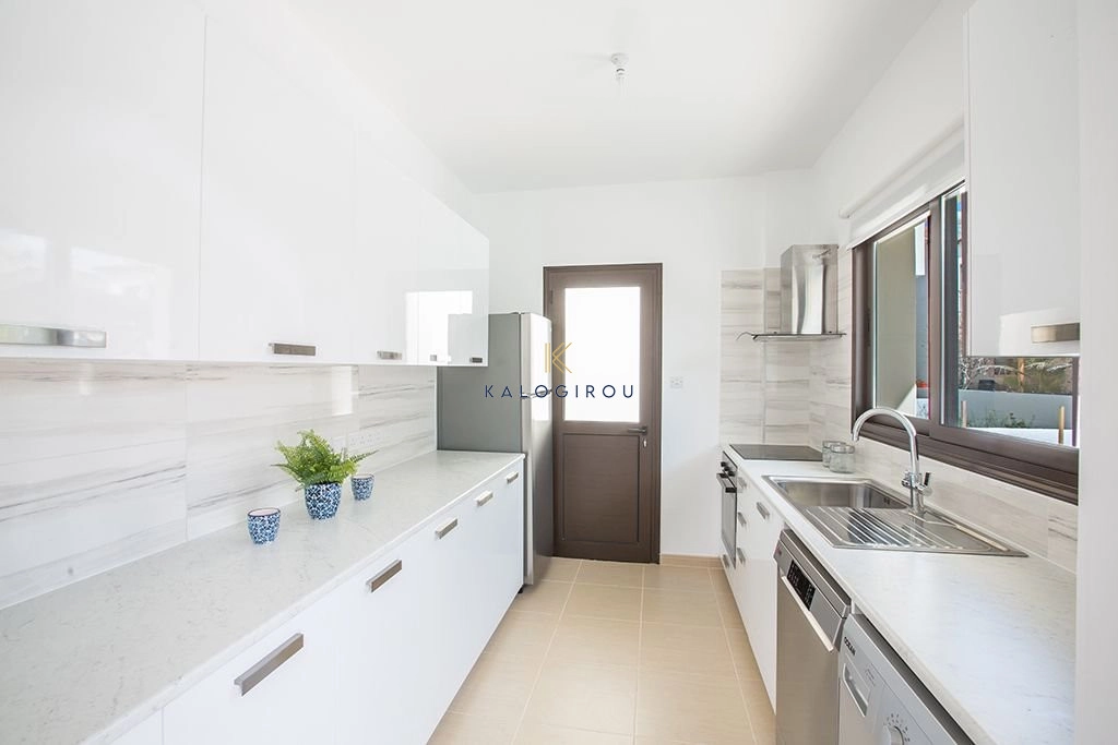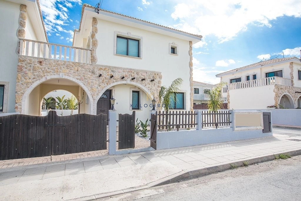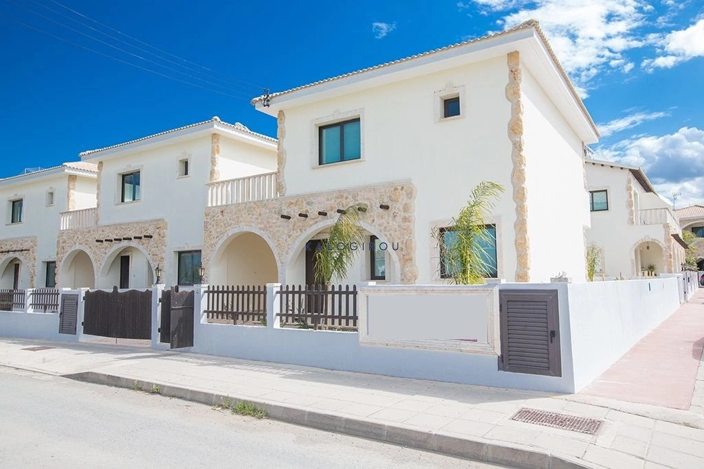 House for sale in Avgorou Village. The house is double story and part of a residential complex. The ground floor consists of a living room, dining area, open plan kitchen, a guest wc, front and back veranda. The first floor consists of three bedrooms, one is en suite with shower and a main bathroom with tub and wc. All rooms have access to uncovered veranda. In addition, the house has parking space and right of use to the communal pool of the complex.