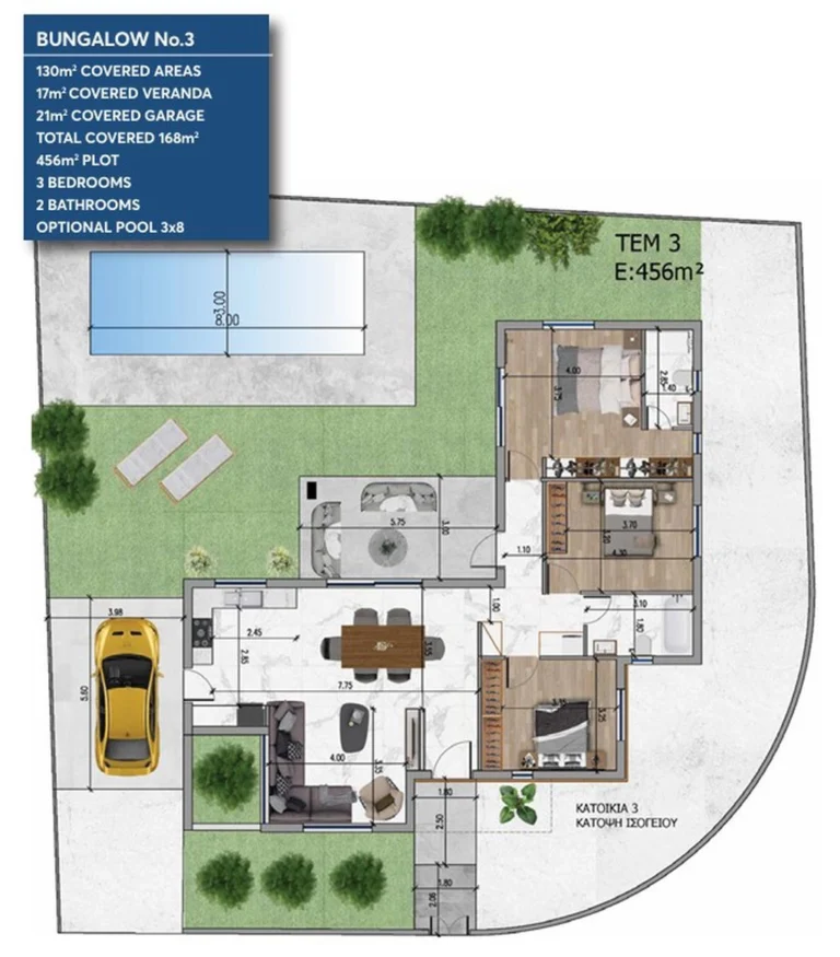 The villa is part of a complex Comprising nineteen luxury three-bedroom residences, each boasting a private swimming pool, roof garden, and garden space, epitomises sophistication and innovation. Crafted with meticulous attention to detail, these residences blend minimalist design with natural elements, creating an ambiance of timeless elegance. The seamless integration of indoor and outdoor spaces ensures year-round enjoyment of the terrace and garden, making these villas an ideal choice for both permanent residency and holiday escapes. With its tranquil yet centrally located setting, the project offers residents a perfect balance between relaxation and convenience. Its proximity to the bustling tourist hub of Pernera, with many restaurants and services, as well as easy access to the highway, further enhances its appeal. Moreover, the project’s close proximity to the upcoming Paralimni Marina presents a compelling investment opportunity with long-term benefits, promising residents a lifestyle of unparalleled luxury and comfort.