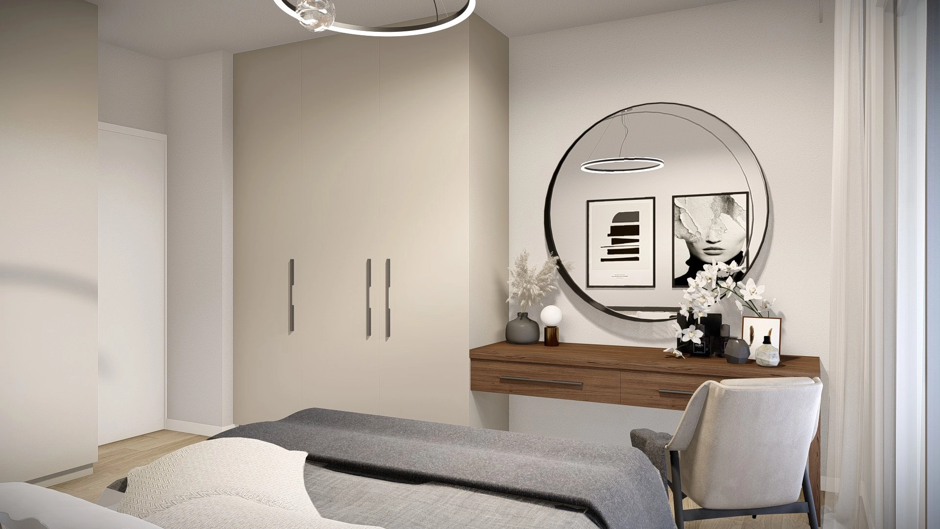 The master suite is a comfortable private retreat, featuring a built-in wardrobe and an elegant en-suite bathroom. Designed with calm tones and natural light, it offers a welcoming and restful environment.