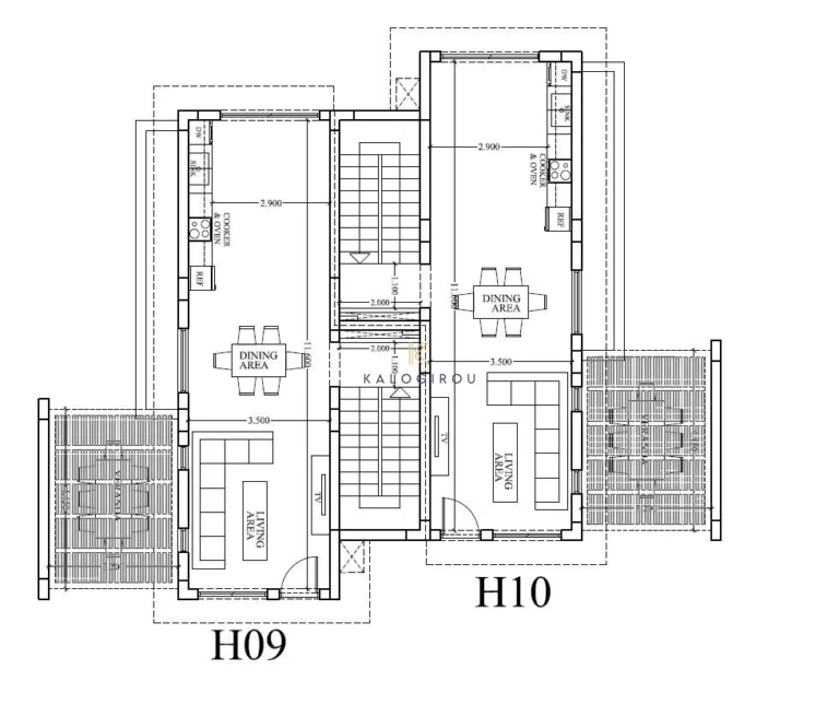 The project comprises of eleven 3-bedroom residences, of which ten are semi-detached and one is detached. Each residence has its own private swimming pool and garden, which ensures the privacy of each and every one. Taking into account the surrounding area, the exterior design of the residences was done in a way that highlights the natural environment, with wood, metal and stone dominating, creating a modern yet timeless design. The same aesthetic is adopted in the exterior of the pool area where wood blends harmoniously with stone, creating a setting of relaxation and tranquility. In the interiors of the residences, natural shades prevail, with the design highlighting the contrasts of different materials which blend harmoniously together. Each residence has an abundance of natural light but also state-of-the-art lighting systems. Designed in a way that offers its residents comfort, each residence stands out for the practicality of its spaces, which makes it ideal not only as a holiday home but also for permanent residence.