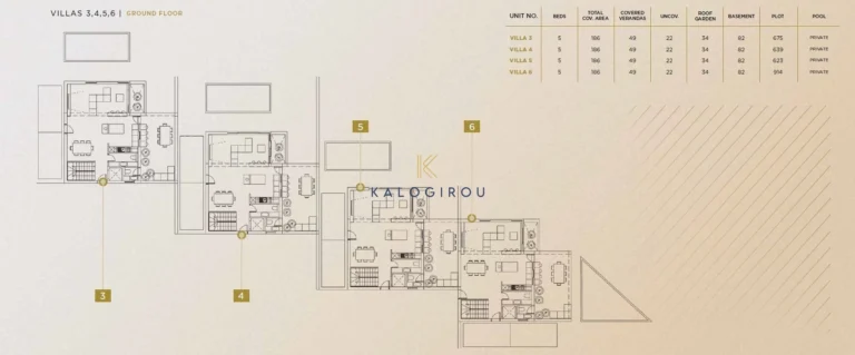 Villa for sale in Protaras area, Famagusta.The villa is extended to the basement, ground and first floor. The ground floor consists of an entrance hall, spacious living room, dining area & kitchen in an open space and a guest wc. In addition, there is a comfortable veranda plus and a wc, accessible from the veranda. On the first floor, there are 3 en suite bedrooms. It is worth mentioning that the primary bedroom has access to a veranda with pool view. The basement consists of 2 more bedrooms, a main bathroom and a utility room. The house offers on the top floor, roof garden & externally on the ground level a private, overflow swimming pool, verdant garden, bbq area private parking. The house is set on a large plot of 639 sq.m.