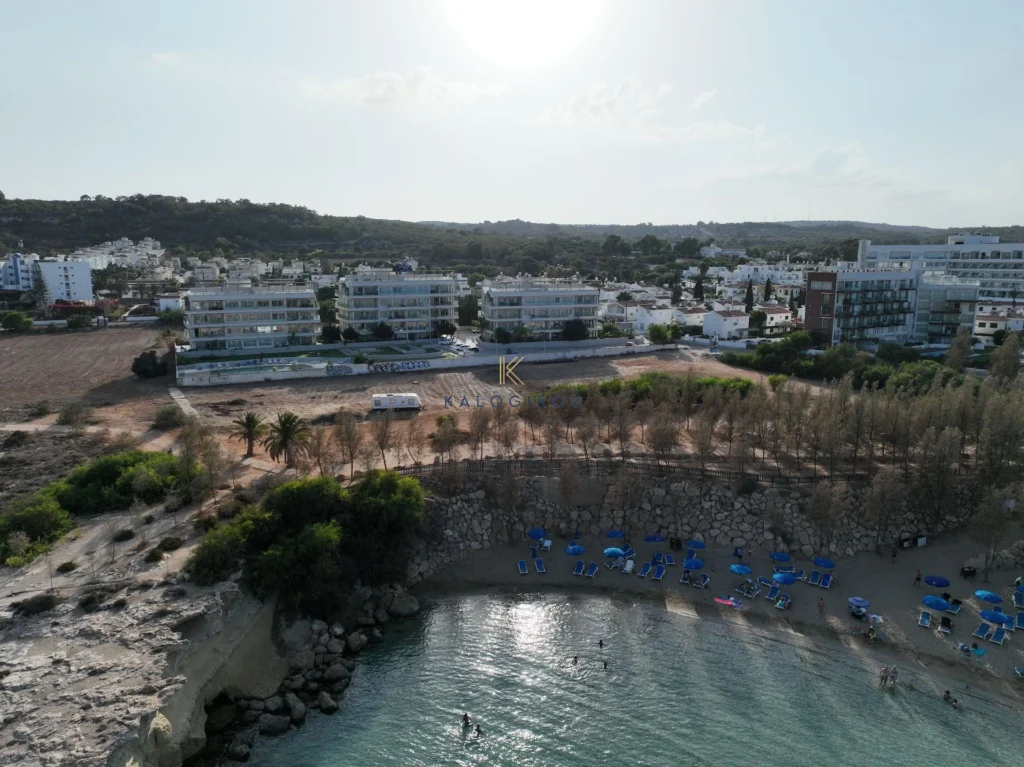 Beach Front, 3 Bedroom Apartment with Common Pool in Protaras area, Famagusta. The property is nested in the heart of Protaras, adjacent to the pristine Cape Greco conservation area. All amenities such as supermarkets, restaurants and award winning Blue flag beaches are 5-10 minutes away.
