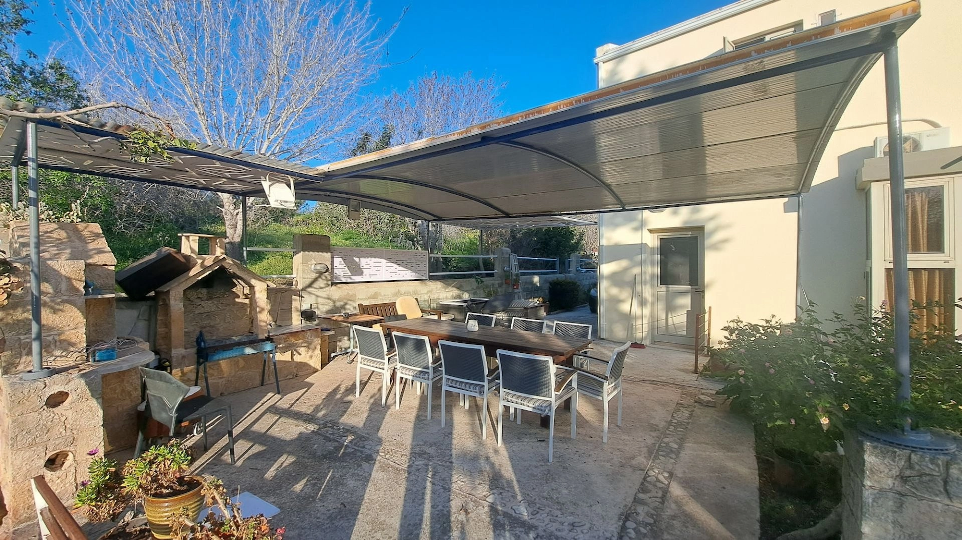 All areas are equipped with air conditioning units, central heating, and double-glazed windows. Furthermore, there is a patio, a garden area, and ample uncovered parking space.