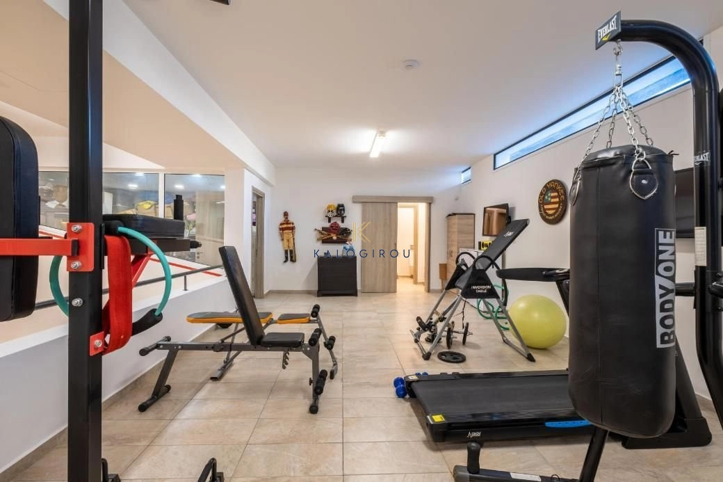 The basement offers even more amenities, having 260sq.m of covered area and including a gym, a steam bath, and ample storage space, alongside a separate maid’s quarters with a private bathroom.