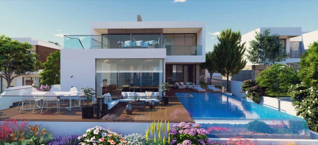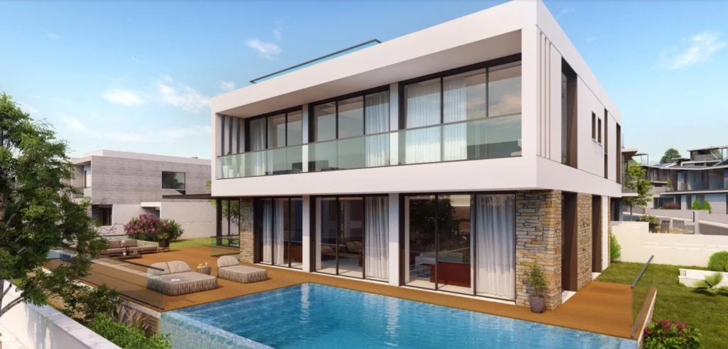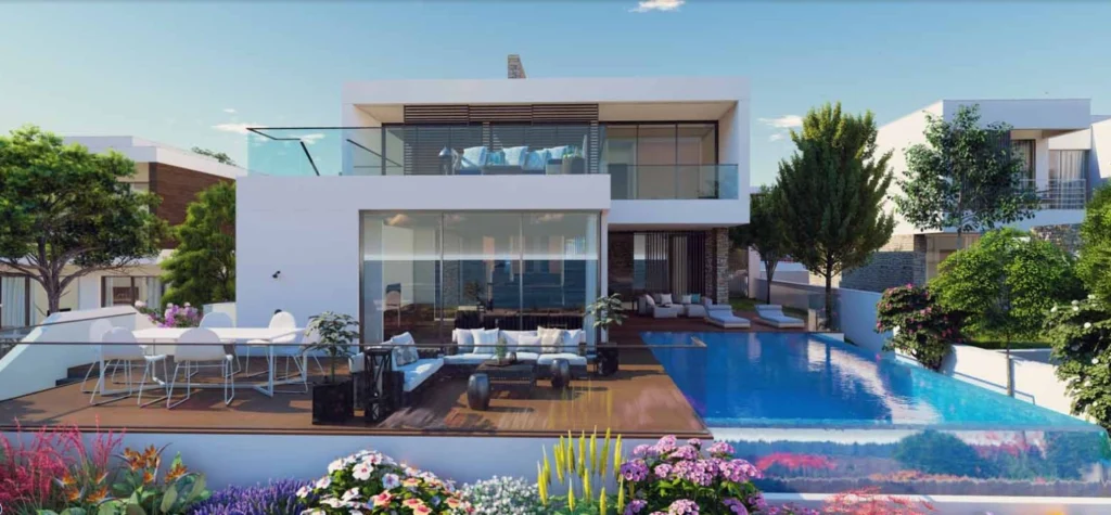 Reference ID: #23373Price details: €2,800,000 +VATLocated in Pafos, a uniquely beautiful town on the island of Cyprus,adjacent to the warm waters of the Mediterranean, this exclusive, high-end  residential development,consisting of fifteen luxury villas,enjoys panoramic views of the sea and direct beach access. Just a minutes away from thes hops and restaurants of the Kings Avenue Mall,while the picturesque harbour and promenade offers the perfect starting point for a cruise. From cocktails on your terrace,to lazy days by your private infinity pool, Pates is your gate way to island life.•  Double glazing energy efficient windows and patio floor-to-ceiling sliding doors of latest technology aluminium sections•  Thermal insulation (Category A)•  Imported marble floor finishes for ground floor internal areas•  Highest quality parquet floors for bedrooms•  High quality custommade wardrobes•  Top quality internal doors•  Bespoke kitchens•  Techno-granite/granite kitchen worktops•  Finest bathroom fittings•  Quality sanitary ware•  Central VRV systems in all areas•  Underfloor heating in all areas•  Intruder and fire alarm systems•  Full installation of Wi-Fi system•  State-of-the-art Home Automation System•  Sensor lights to parking area and mainentrance•  Front door video phones with colour monitors•  Electrically operated carport gates•  External pergolas in steel and solid wood•  Swimming pool with overflow surrounded by wooden deckingThe villa has a basement 110 sq.m.Available for sale three 5-bedroom villas.Prices: €2,800,000-€3,400,000Plot size: 884-1002 sq.m.Covered area: 393-471 sq.m.Covered veranda: 52-77 sq.m.Uncovered veranda: 115-172 sq.m.PLUS V.A.T