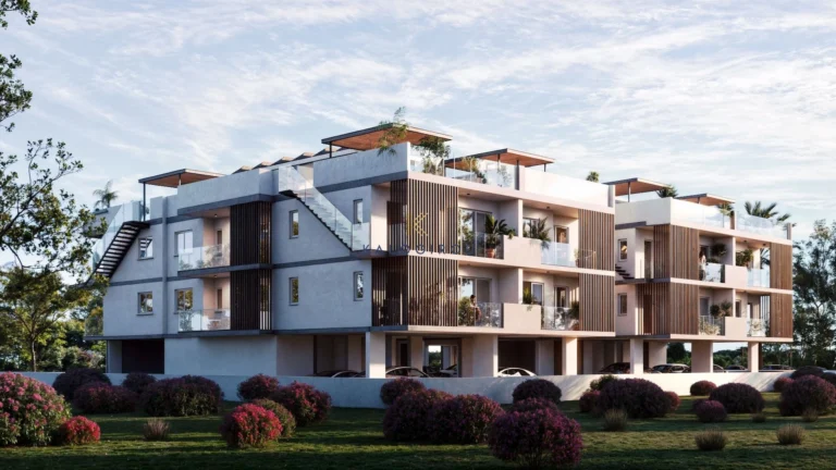 The luxury apartment for sale in Larnaca, in Livadia area has 76sq.m of internal covered area and it consists of two bedrooms, open plan kitchen, living room, one main shower with WC, one en – suite shower in the master bedroom, a covered parking, elevator and 24sq.m of covered veranda. The property also belongs storage room at the grand floor.
