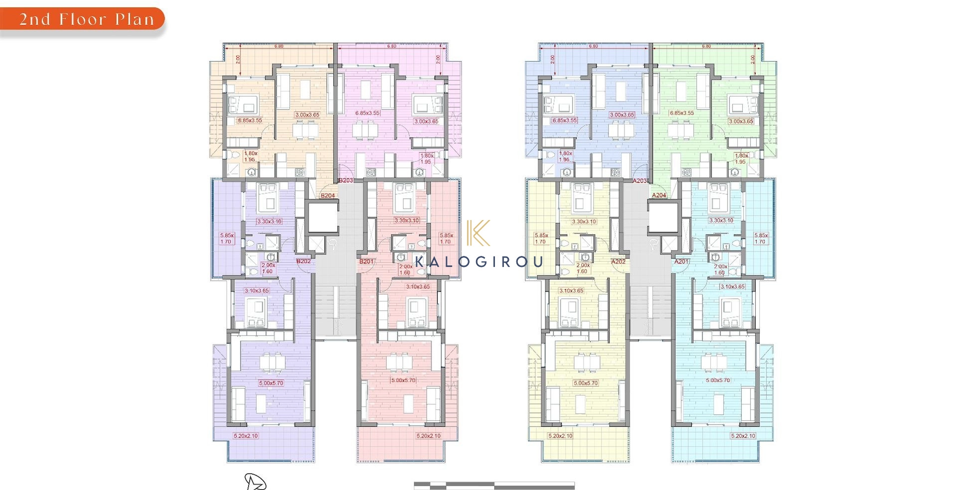 The property is a part of a complex which consists of two double – storey blocks. Each block belongs 8 one or two – bedrooms’ apartments. Each apartment at the second floor belongs a specious roof garden.