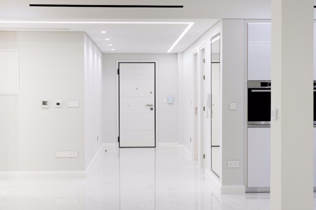 The apartment offers bespoke design, crafted with high-end finishing such as marble, granite stones, real wood floors, open plan design kitchen, and living-room. Includes a guest w/c, 1 master bedroom with en-suite bathroom and a large glazed walk-in closet, 2 additional double bedrooms with en-suite bathrooms, and a large outdoor veranda, accessed from the living room area via fully folding glazed doors.