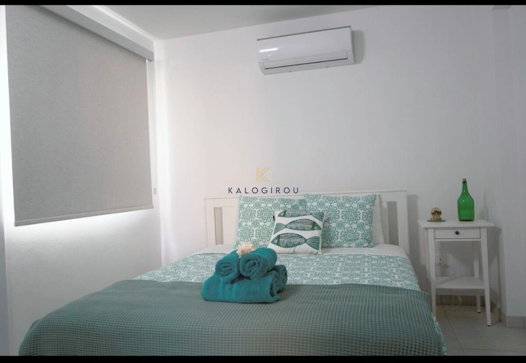Renovated Apartment for sale in Kaparis area, Famagusta. The property is fully furnished and consists of an open plan kitchen with a living and dining area, two bedrooms, common shower, 1 wc, covered parking, fully furnished and kitchen appliances. The area of the internal spaces is 57 sqm plus 6sqm of verandas. This space was created with a lot of love. It has a unique design and it is ideal for families.