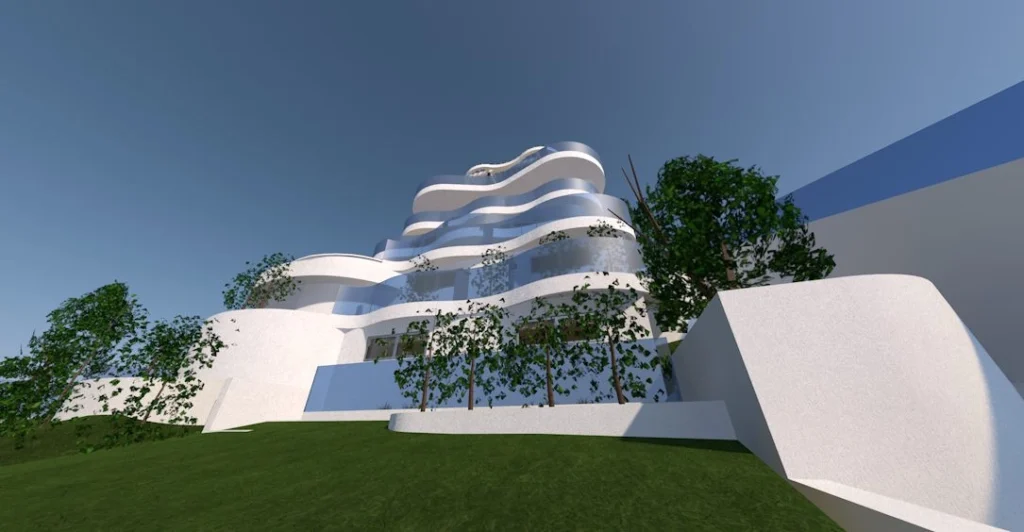 This ZERO Energy Building boasts a futuristic signature design, offering unparalleled luxury and uninterrupted sea views from all floors.
