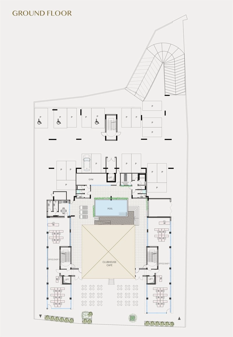 The development also features a private pool, gym, sauna and massage rooms, and a welcoming cafe.