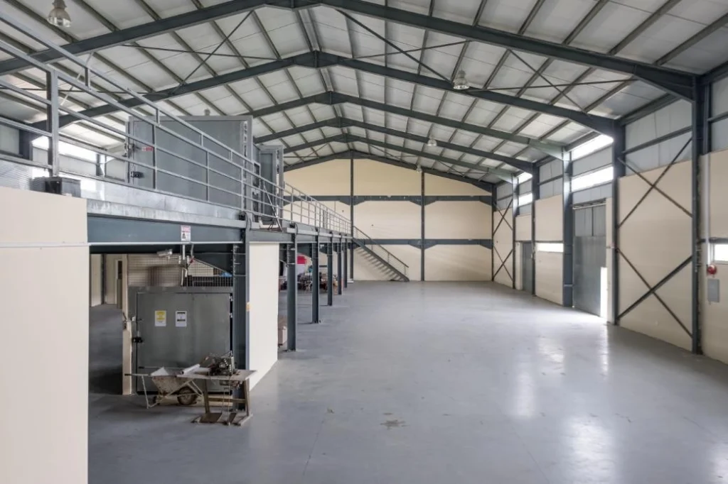 Reference ID: #SA29194Price details: €930,000The asset consists of two industrial warehouses no 1 and 2 in Dali. They are located in Geri industrial area, 3,6km from Nicosia – Limassol highway. The two warehouses have been unified and they are in very good condition. They have a covered area of 1,198sqm and 598sqm mezzanine. They consist of an open plan storage room, kitchen, 2 WC’s and 3 office spaces.