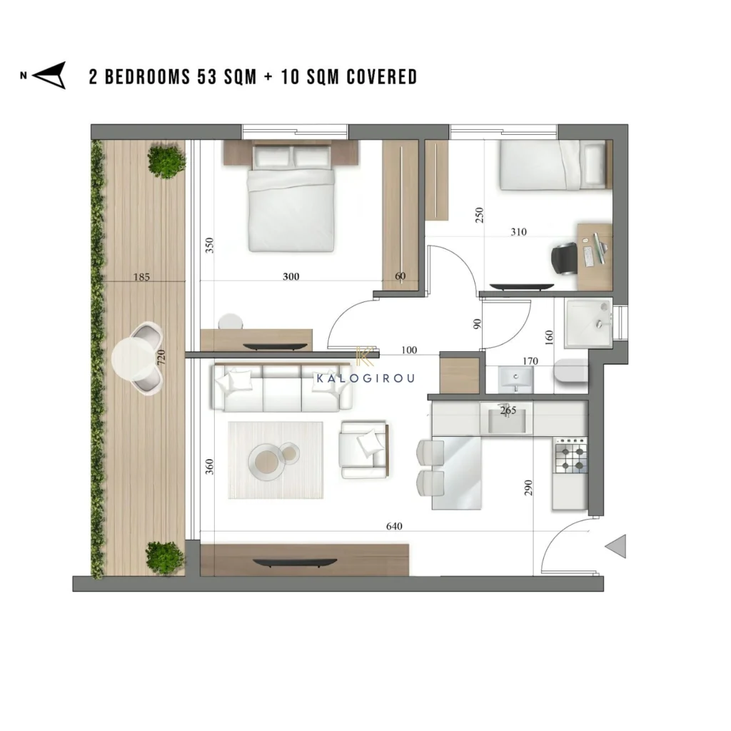 Apartment for sale in prestigious Agios Nikolaos area, Limassol. The apartment offers luxury living. It consists of an open plan living/dining area, kitchen, two bedrooms, a main bathroom (with shower) and covered veranda. Residents will have access to a covered parking area on the ground floor.