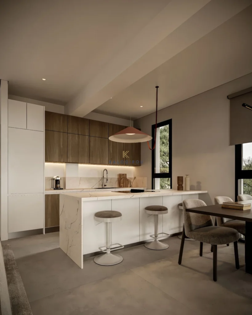 The flat is a part of a project located in the flourishing residential sector of Aradippou, connected to Larnaca’s vibrant core. This luxury complex, spanning three floors, features eight meticulously designed two- and three-bedroom apartments. The development stands as a modern architectural marvel, seamlessly blending visionary design with opulent interiors to redefine contemporary living. Its distinctive style merges glass, steel, wood, and concrete, creating a unique urban oasis. All properties feature Energy-efficient Class A certificate, shared electricity with net metering photovoltaic System, electric vehicle charging stations, solar energy panels for eco-friendly living and many more.