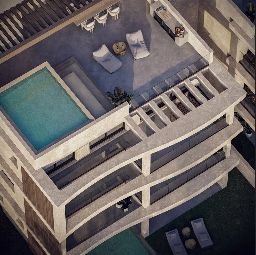 They also include penthouses with a private pool and apartments with a private garden. Built in such a way as to convey the sense of a summer resort, the project stands out for their bohemian minimalist air, their clear-cut lines, and the quality of materials.