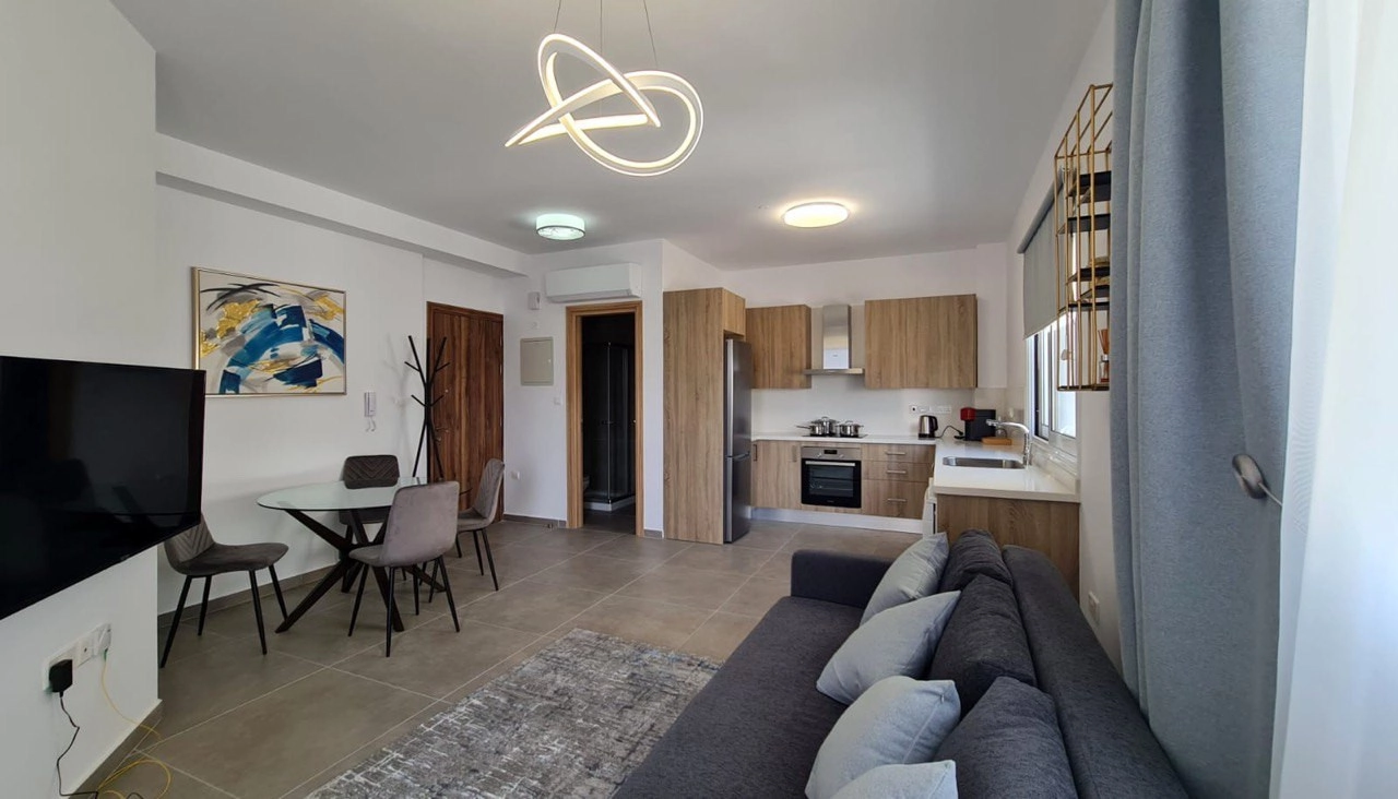 Stylish and fully furnished 1-bedroom, 2-bathroom apartment in Papas area of Limassol.