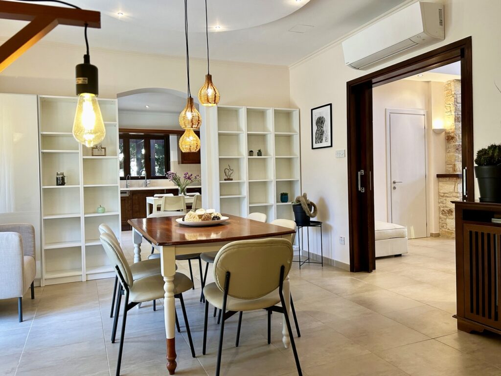 A beautiful 5 bedroom villa located in Souni, in a peaceful village among pine trees and overlooking sea and salt lake. The house is within 8 minutes drive to the highway, 10 minutes drive to the Kourion beach and 20 minutes drive to the Limassol city center.The villa has private pool, barbecue area, pergola for 2 cars, small housemaid house with bathroom and kitchenette.Plot size: 716 m2Internal covered area of the main house: 250 m2Two pergolas for outdoor sitting/diningSmall Housemaid house with bathroom and kitchenetteLovely wooden shedSemi-Covered Pergola (parking area) for 2 carsWooden gates with automatic openingSwimming pool with glass fansBeautiful green gardenProperty Details:Total bedrooms – 5Total bathrooms – 3Kitchen – 1Laundry – 1Fireplace – 1Living room – doubleHeating type – dieselCovered parking area for 2 carsPool – 1Barbecue area – 2Pergolas – 2Housemaid house – 1Wooden shed – 1Fully Air-conditioning with new Daikin air conditionersSmall housemaid house studio type including 1extra bathroom