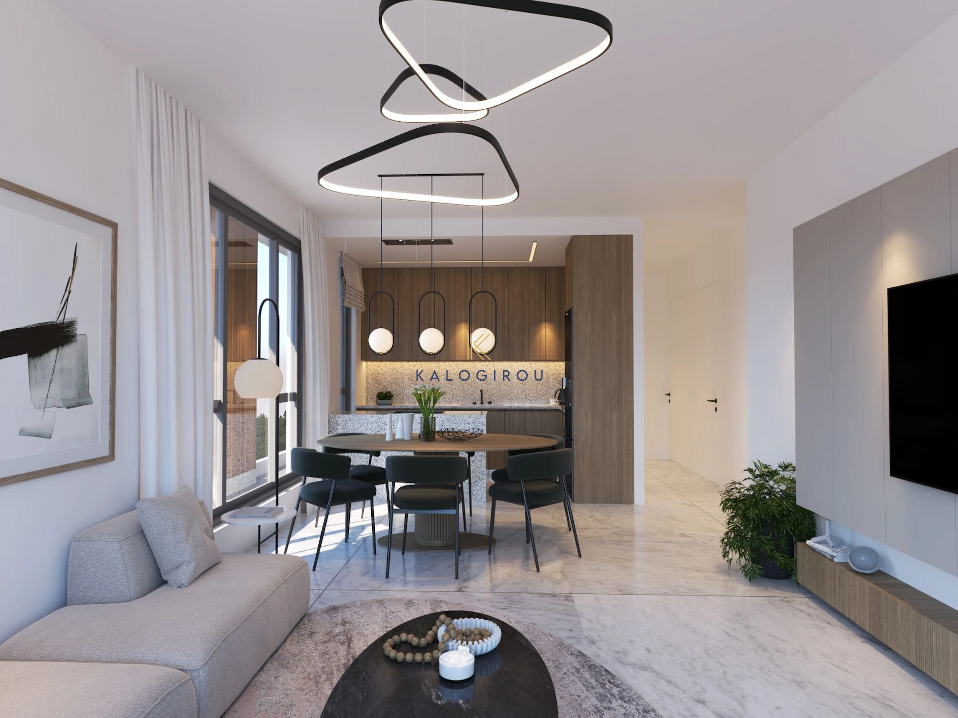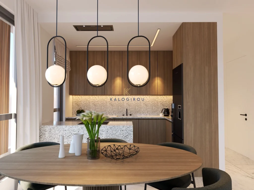Apartment for sale in Drosia area, Larnaca. The property consists of an open plan kitchen and living room with dining area, a main bathroom, two bedrooms, one en-suite shower with toilet in the master bedroom and covered veranda. Moreover, the residents will have access to a covered parking and storage room.