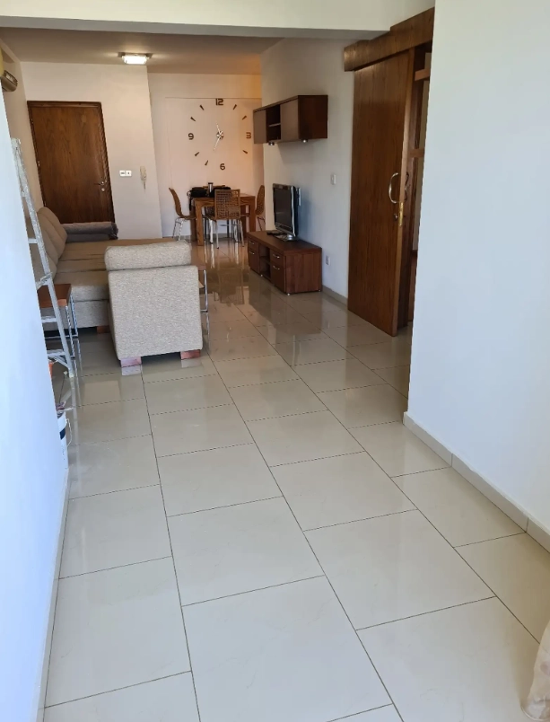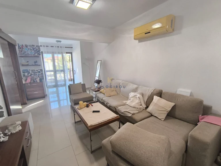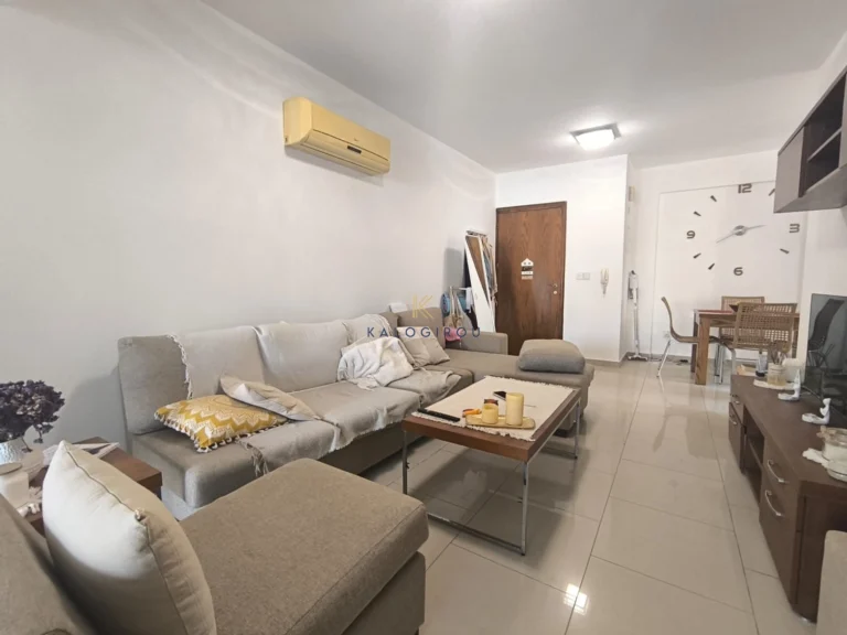 Apartment for sale in Makenzy area, Larnaca. The apartment consists of 2 bedrooms, an open plan kitchen, living area, 1 bath, 1 wc, covered parking, A/C, and a covered veranda. The internal area is 68 sq.m, with 10 sq.m of covered veranda. It is ideally located between Makenzy and the city center and can also be used for short-term rental purposes.